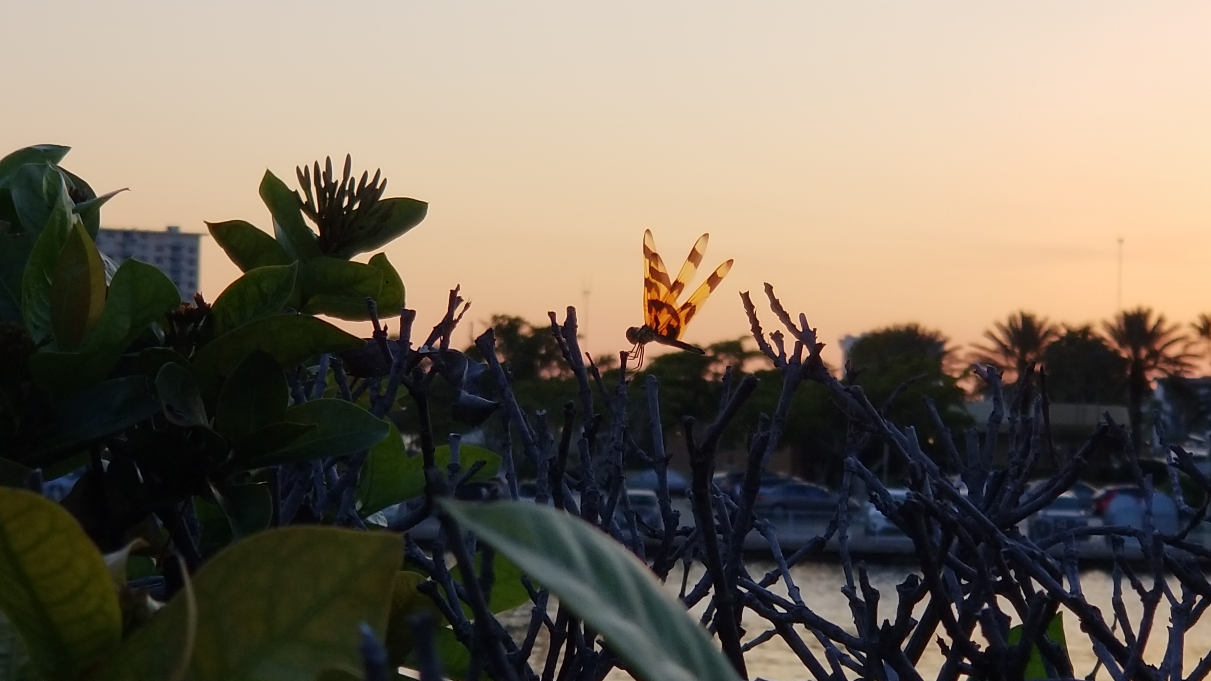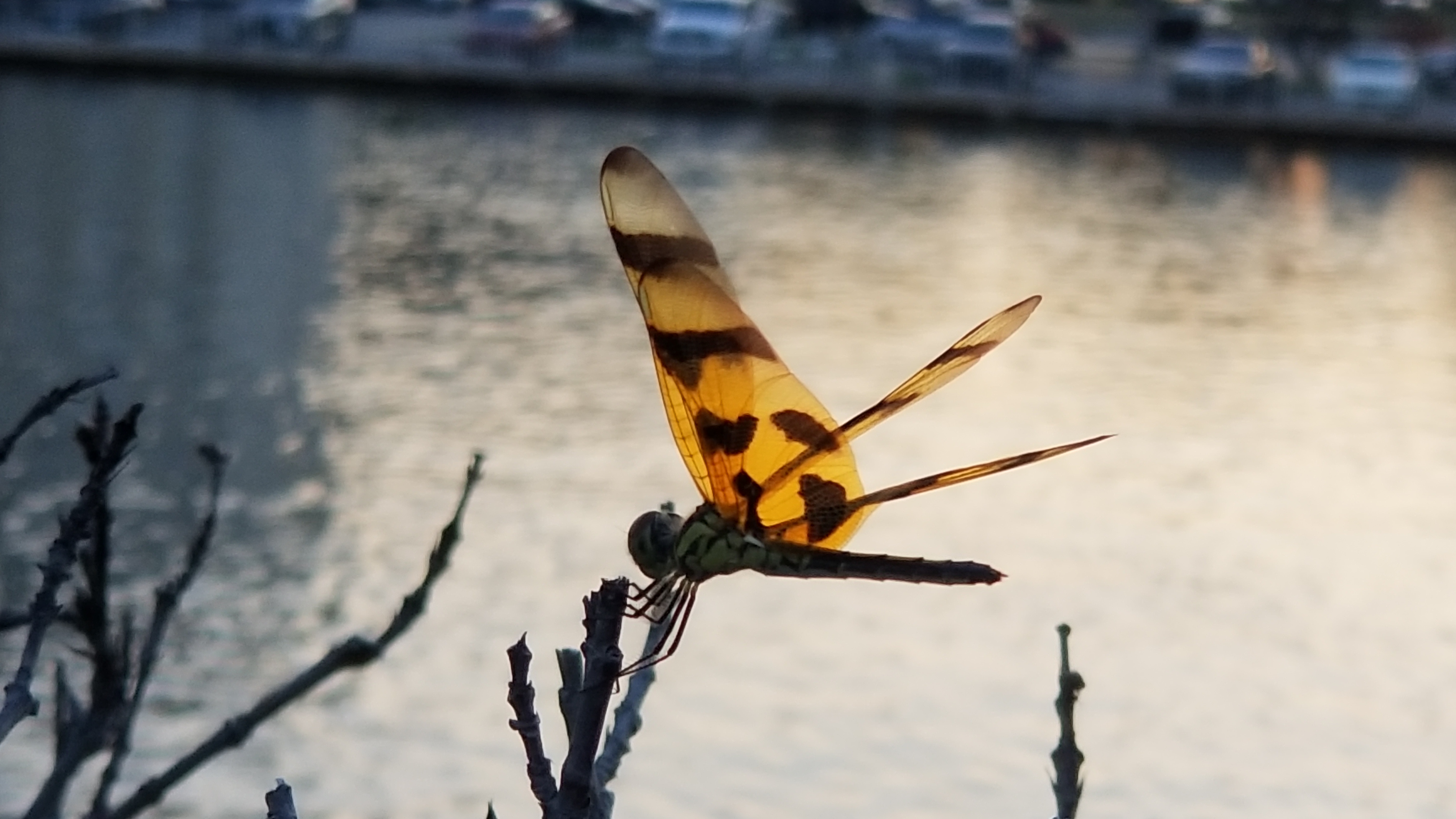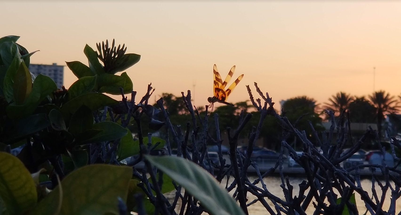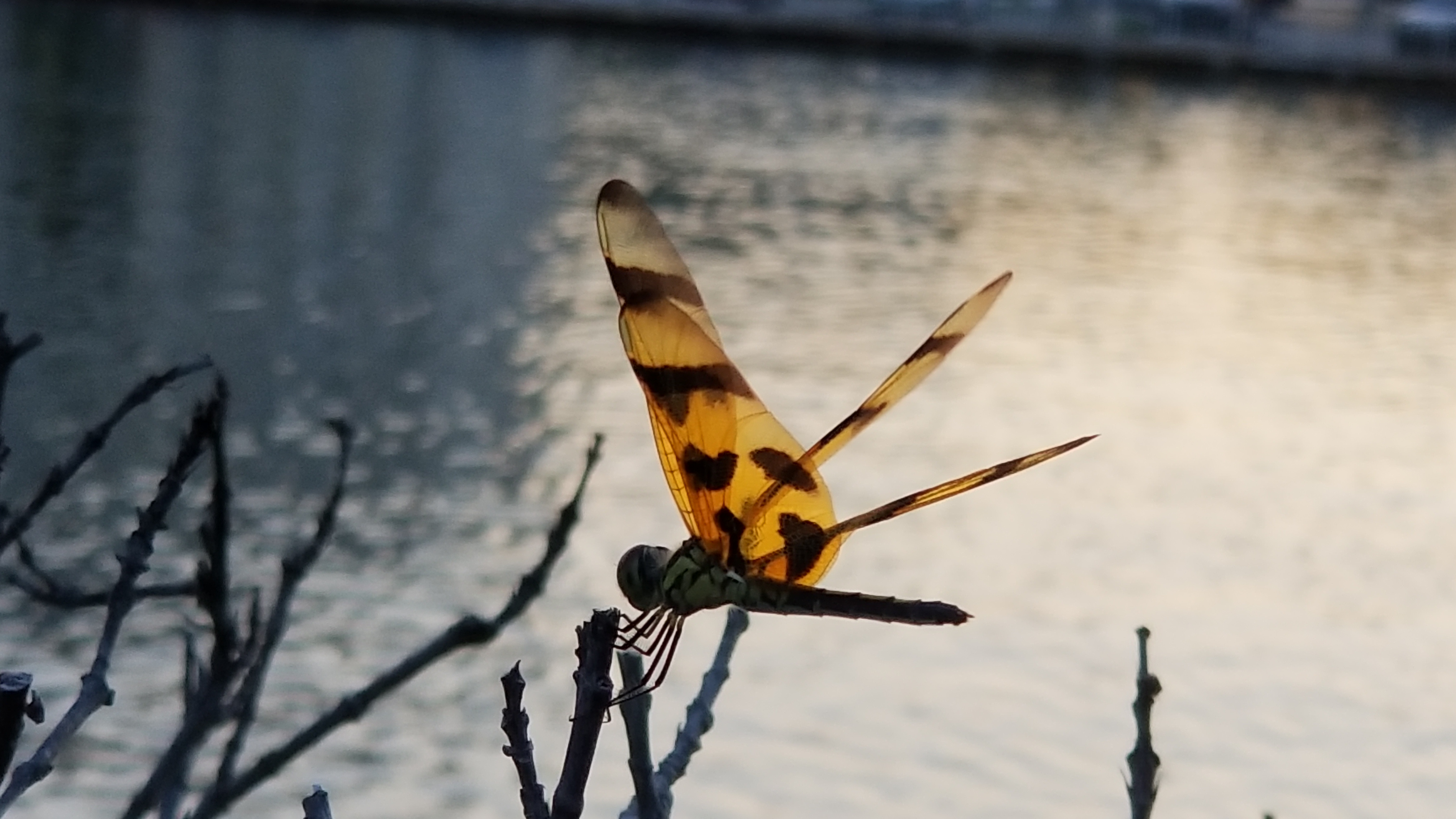 To my surprise, I found two dragonflies and a lovely butterfly hanging out together!