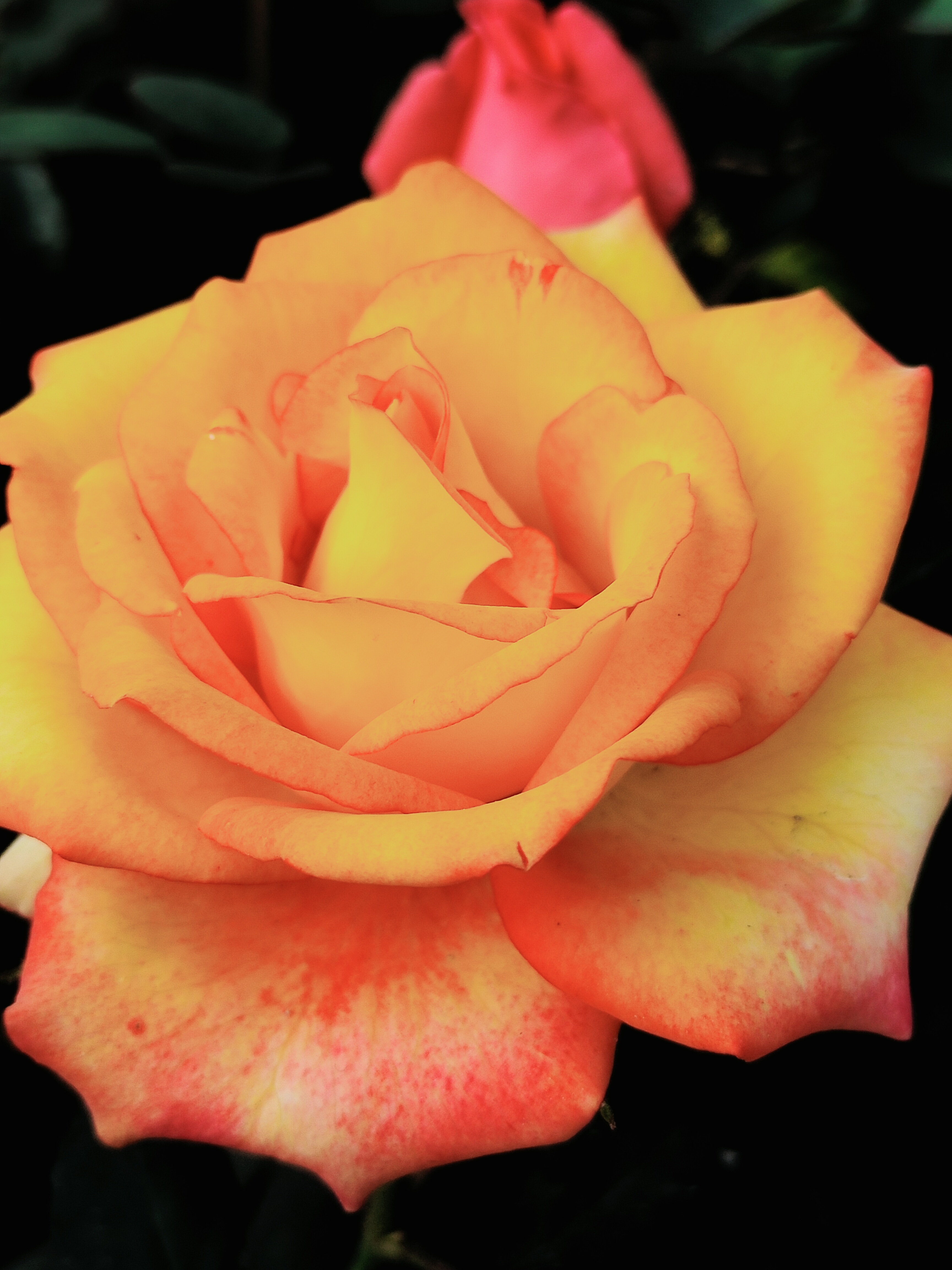 হলুদ এবং গোলাপী কালারের গোলাপ ফুলের ফটোগ্রাফি।