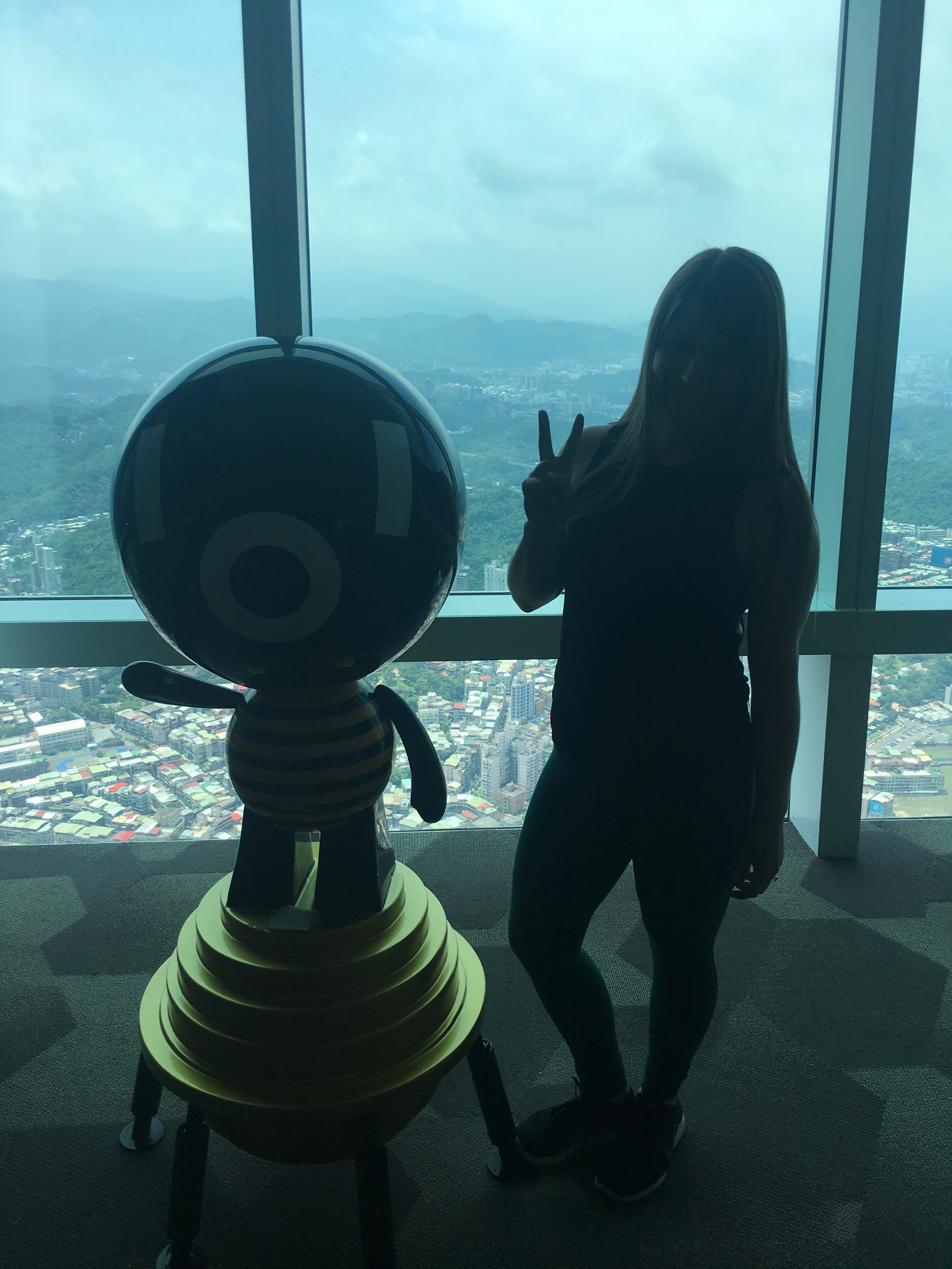 Once our bellies were full we got an Uber and headed out to the city. Our first stop was Taipei 101, a landmark supertall skyscraper in Xinyi District, Taipei, Taiwan. The building was officially classified as the world's tallest in 2004, and remained such until the completion of the Burj Khalifa in Dubai in 2010. It also used to have the fastest elevator in the world, traveling at 60.6 km/h and transporting passengers from the 5th to 89th floor in 37 seconds. That was until the title for the fastest elevator was given to the Shanghai Tower in Shanghai, China. When arriving, we bought our tickets and took the elevator up to the 91st floor. Once at the top we walked around the observatory deck which provides an unobstructed view of the city in all directions. The observatory deck also houses a museum where visitors can learn about the design process and construction of Taipei 101 and other similar large-scale construction projects around the world, including a free audio tour in eleven languages, as well as high-powered binoculars, refreshments, and professional photography service.