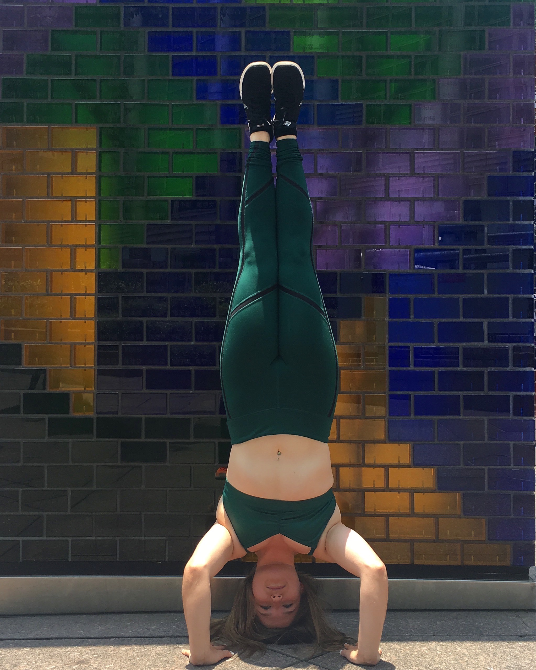 Colorful wall right outside of Taipei 101 I just HAD to do a headstand in front of it. I couldn't resist
