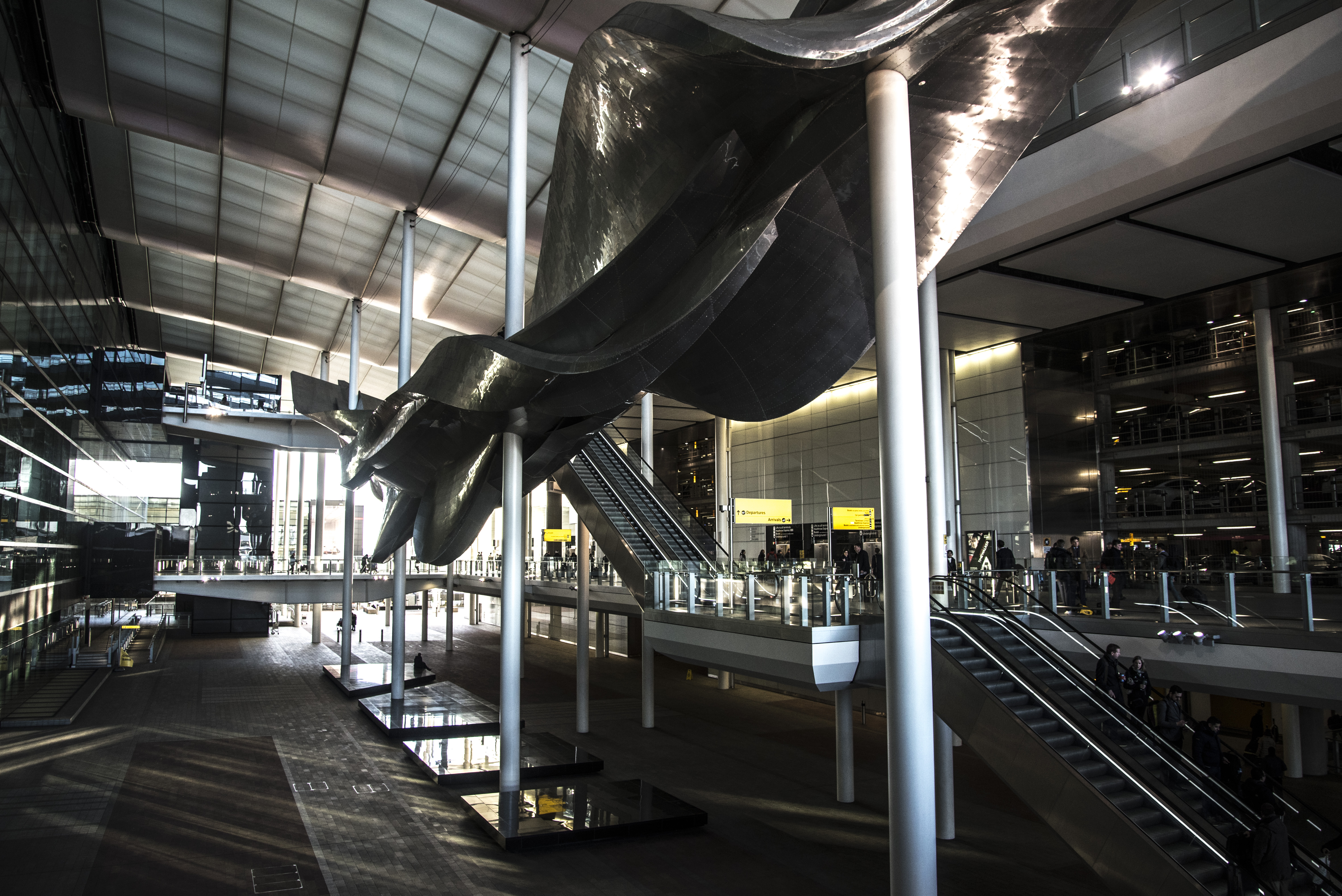 On my way to the Heathrow Express train I saw an interesting sculpture named Slipstream, by Richard Wilson. Basically it shows the slipstream of a stunt plane's flight path as you can see above.