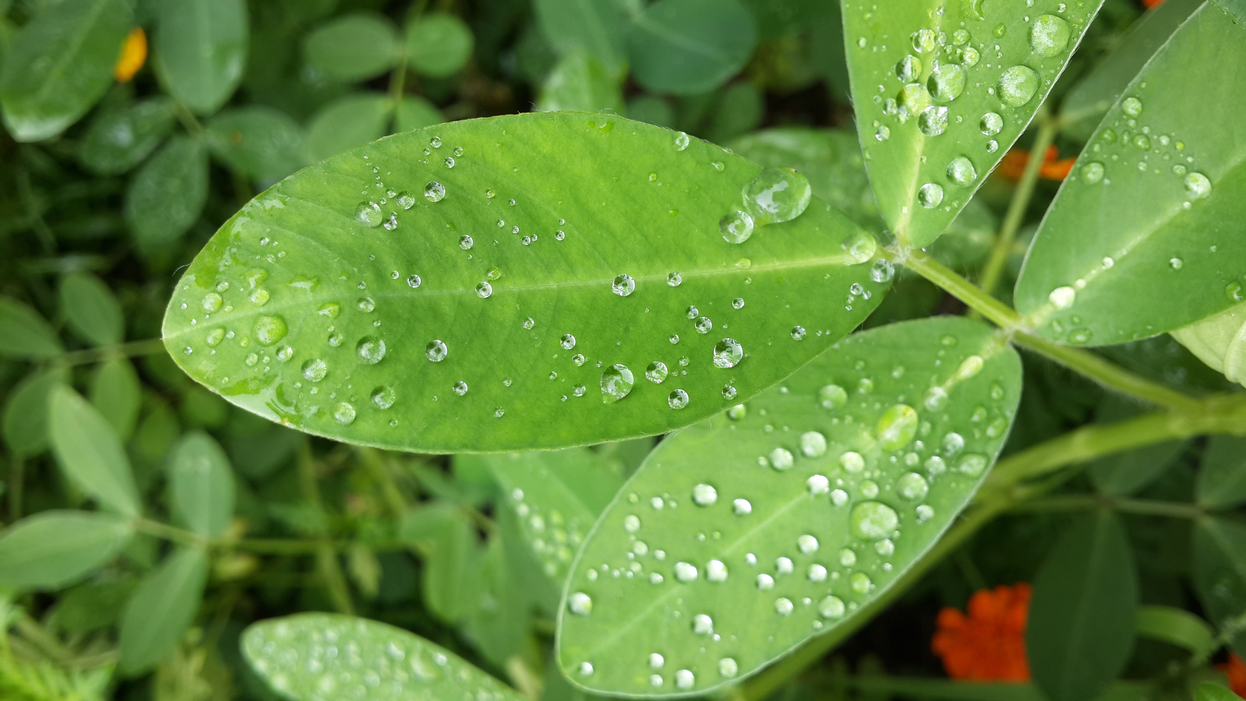Last night we had a light rainfall and this morning I was blessed to see these beautiful little drops of rain on the leaves of my peanut plants.