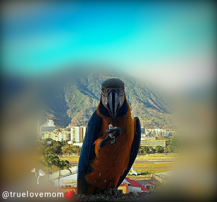 | Verlas tan cerca es un espectáculo y ellas estan tan acostumbrada a la presencia de las personas que se deja fotografíar sin problemas, tuve la impresión que sabía lo que yo estaba haciendo, mientras le tomaba una ráfaga para no perder ningún detalle y al mismo tiempo dejar al fondo en mejor ángulo para apreciar mi querido Wuarairarepano, le decía lo maravillosas y hermosa que era, que sus plumas tan coloridas eran su mejor traje, bajaba su cabeza de un lado a otro mientras sostenía entre sus patas su merienda.