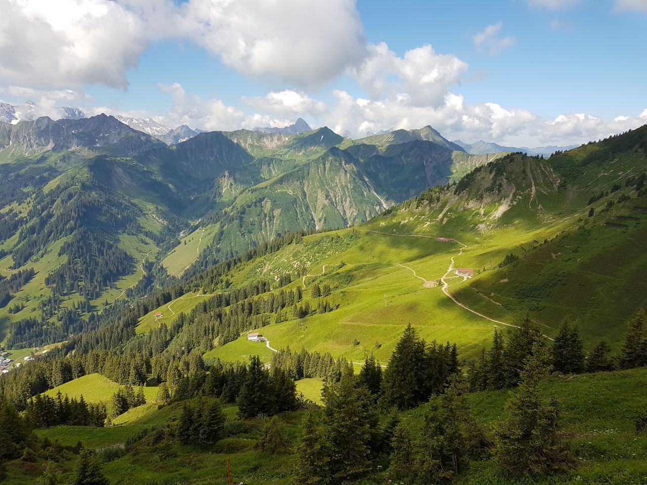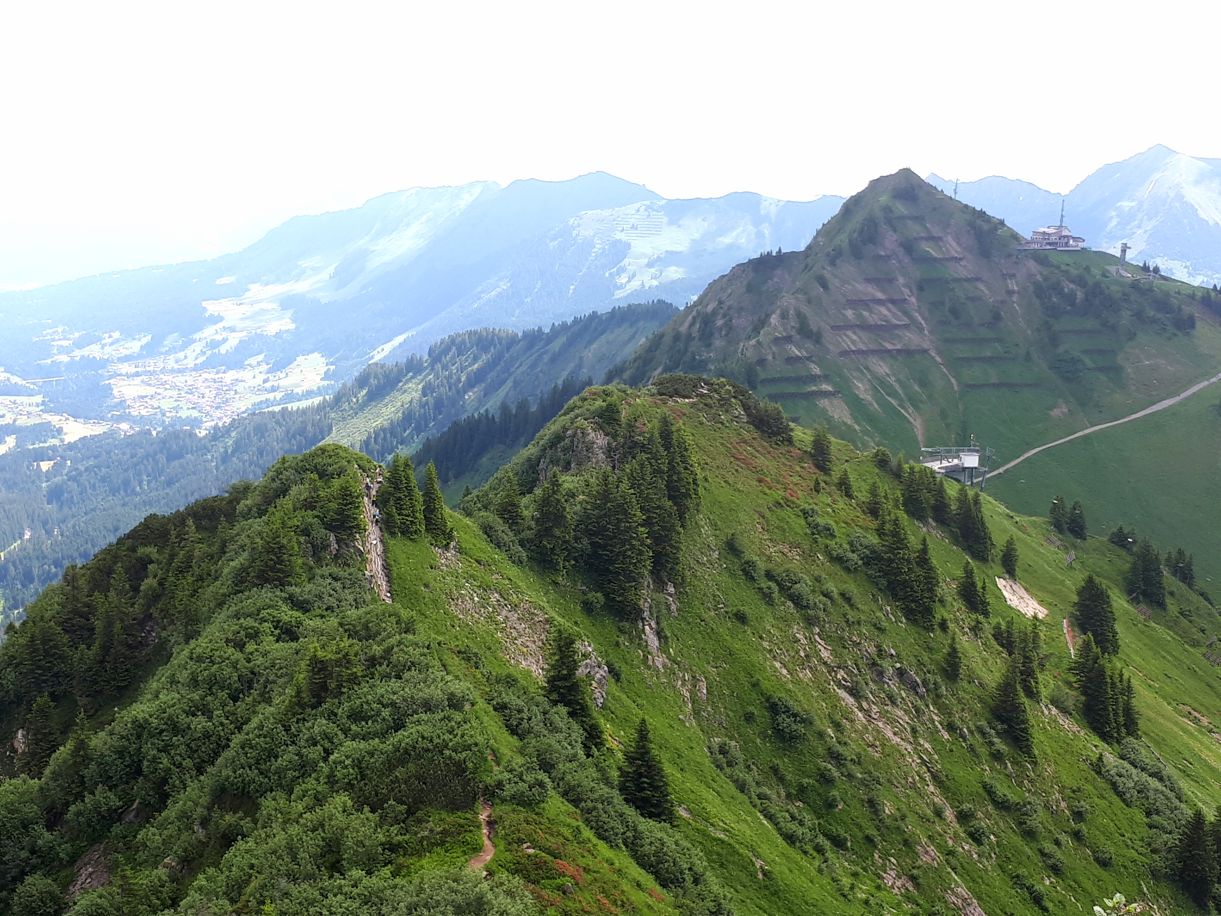 Here you can see the cable car station in the right upper corner. From up there you walk down the way you see below and then up to the Ochsenhofer Köpfe of which you can see two right in the front: