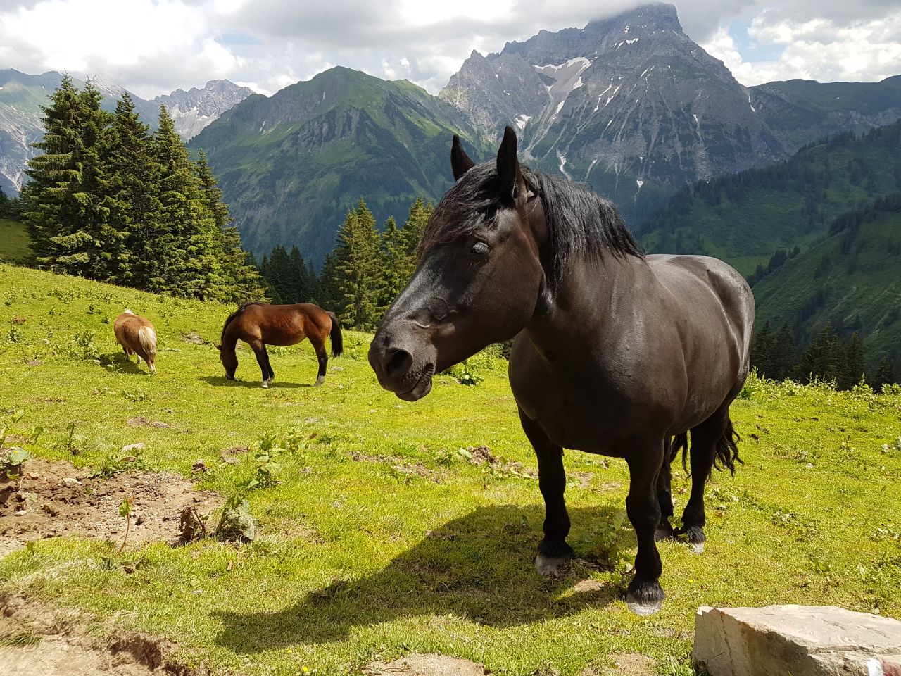 After we made it over the Oxen Heads we walked down to a small alpine hut to have a short break. Afterwards we moved on down in the valley. On the way down we had to discuss with horses and cows if they could please let us pass because they blocked the paths.