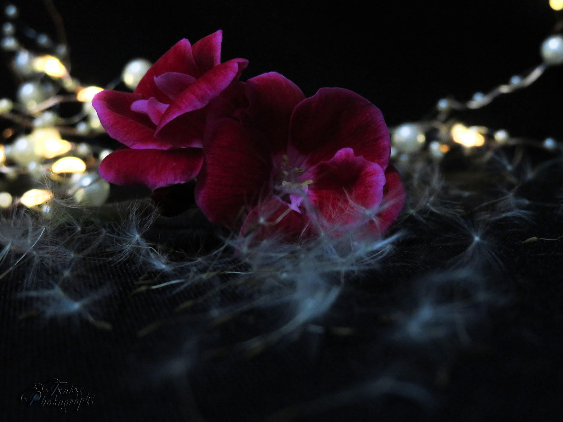 The red turns to garnet and the white dandelion adds the personal touch.