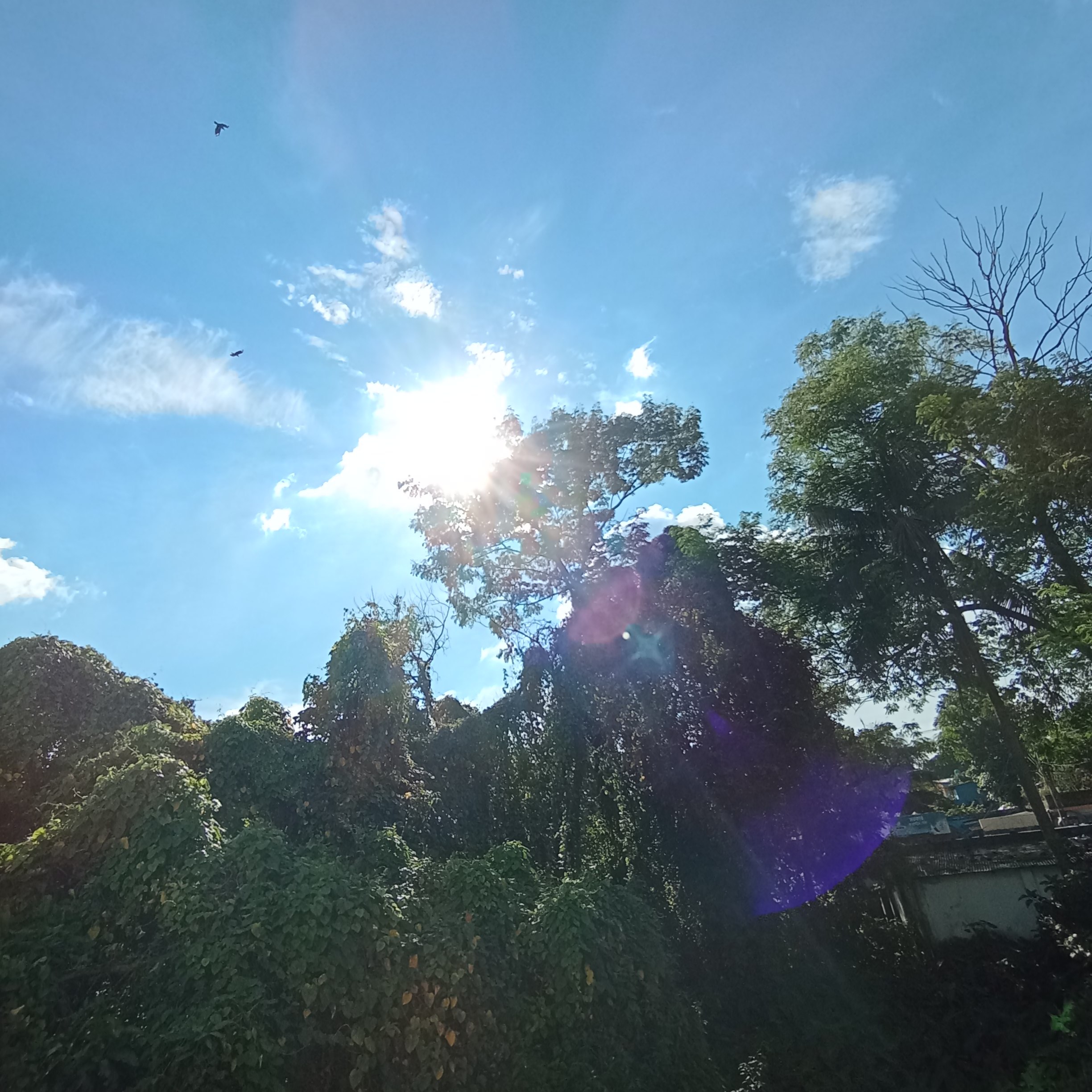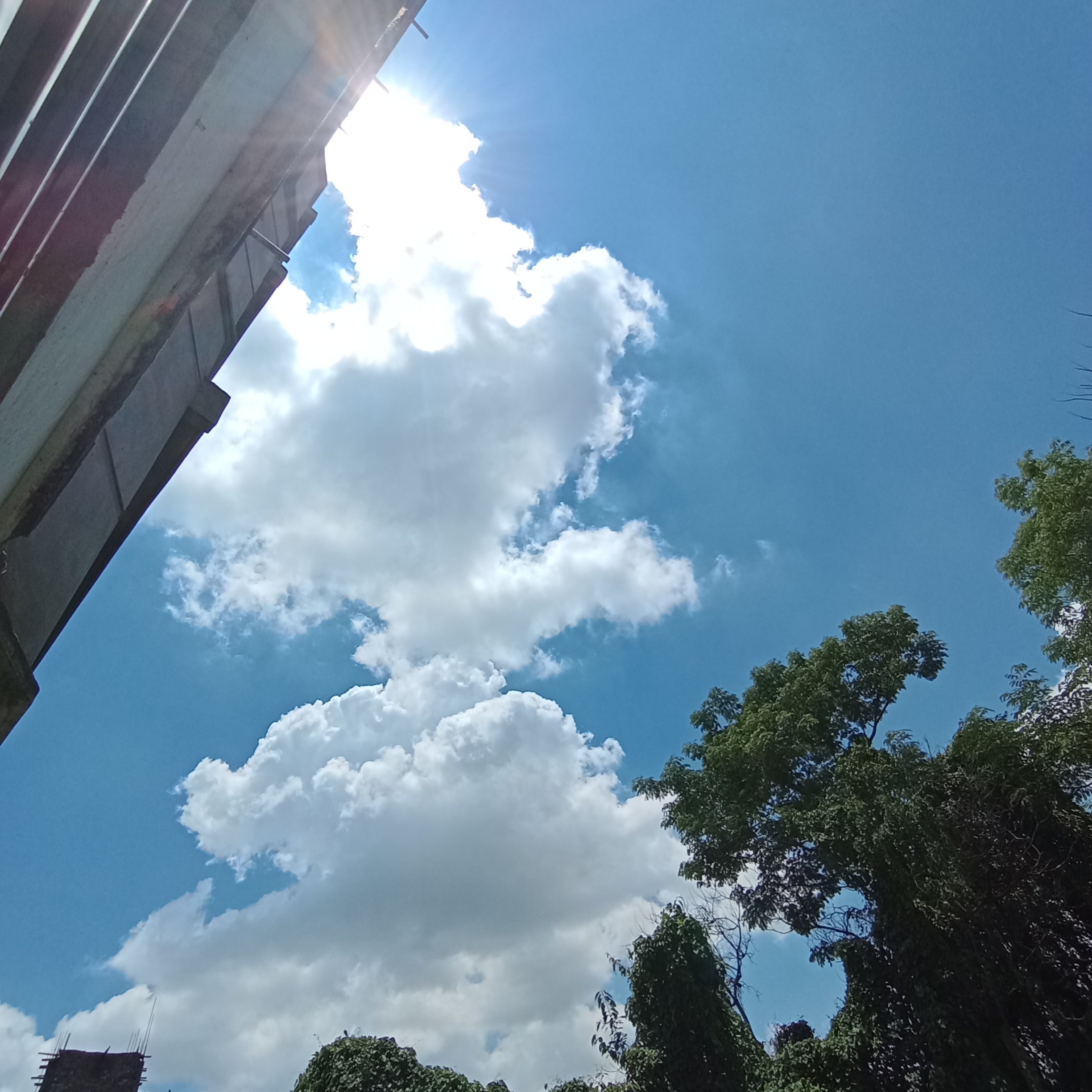 It is autumn season running.At afternoon in the sky the sun started playing hide and seek behind the white clouds.The white clouds in the sky are playing with the sun.And I enjoyed this hide and seek game of clouds with childlike enthusiasm.