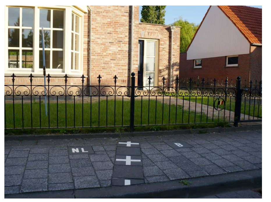 The town of Baarle-Nassau in the south of the Netherlands you can see the border between the Netherlands and Belgium in several places, streets, cafes, public places.