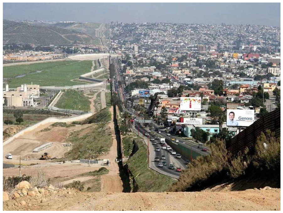 The fence between America and Mexico is on the left in California, on the right is the Mexican city of Tijuana and on the left is the city of San Diego, USA.