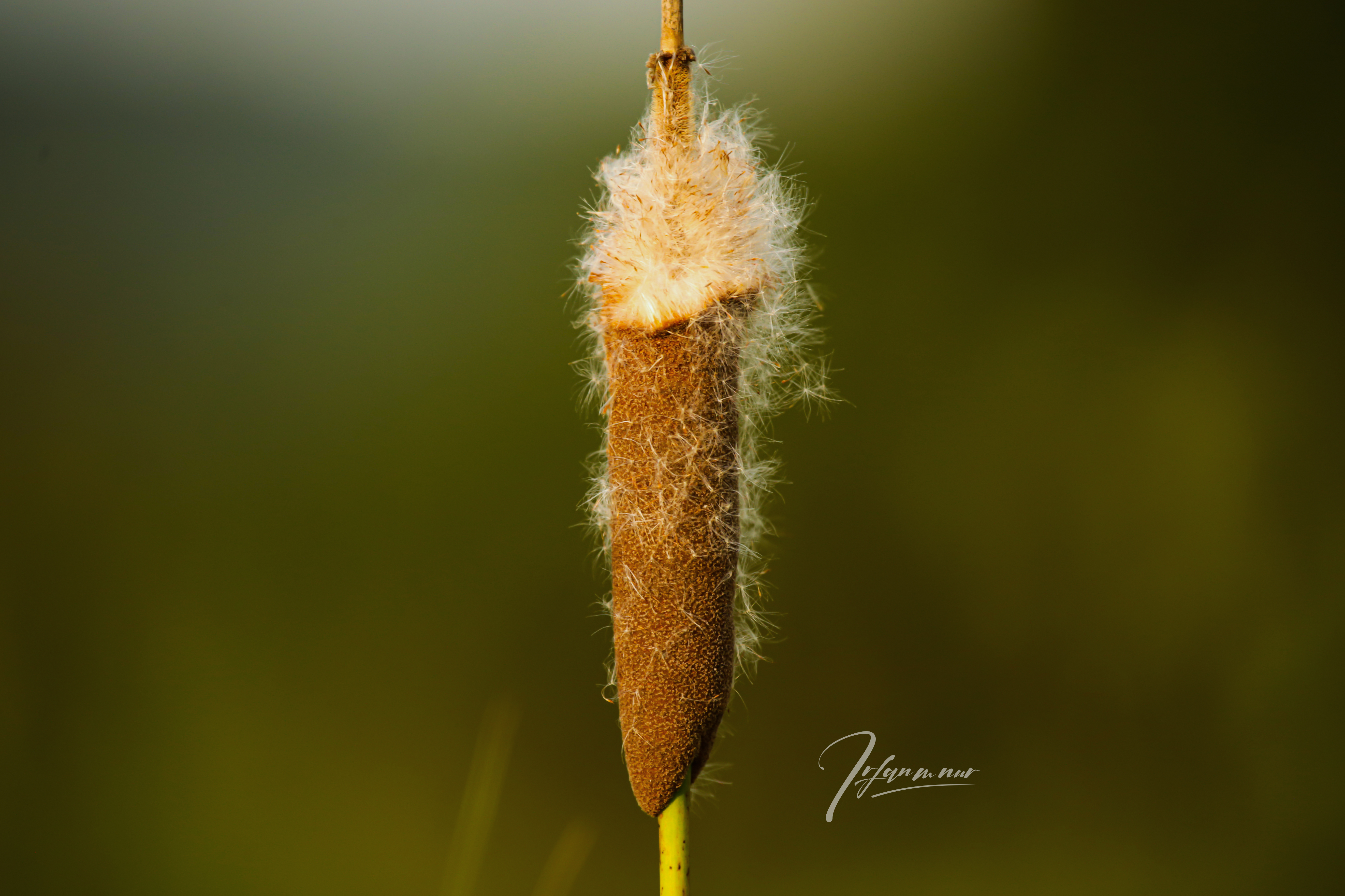 Typha angustifolia L. (also lesser bulrush, narrowleaf cattail or lesser reedmace) is a perennial herbaceous plant of genus Typha, we call that by 'bak dah'