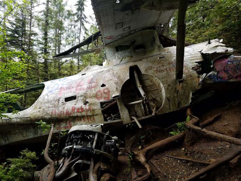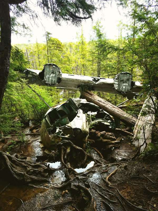 The plane is located in Tofino on Vancouver Island and is relatively difficult to find if you are planning to stay clean. The hike is filled with mud and water with ropes put on by other hikers to help you keep your balance on small trunks going over puddles of water.