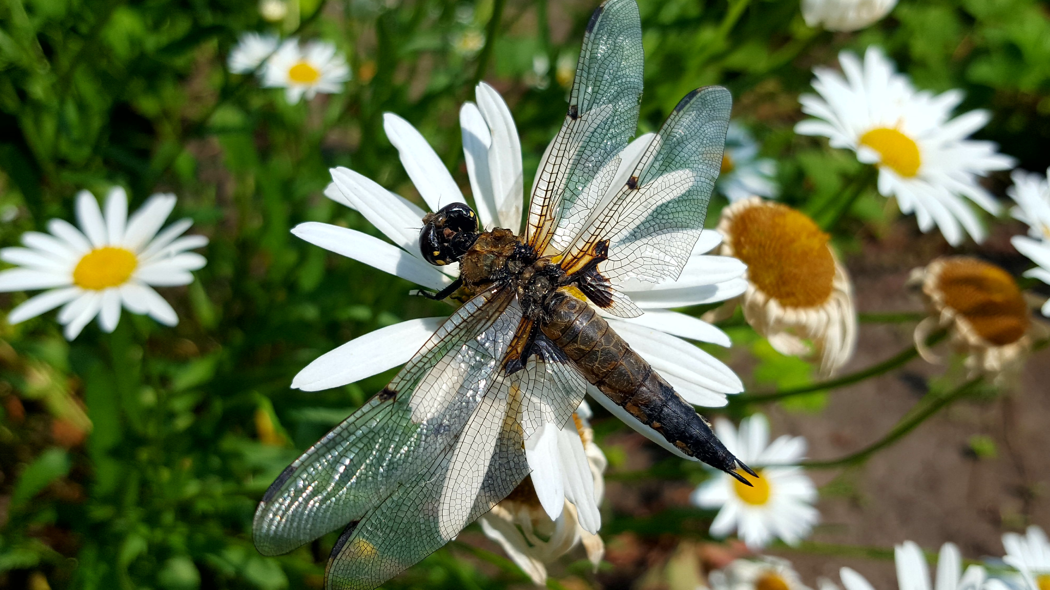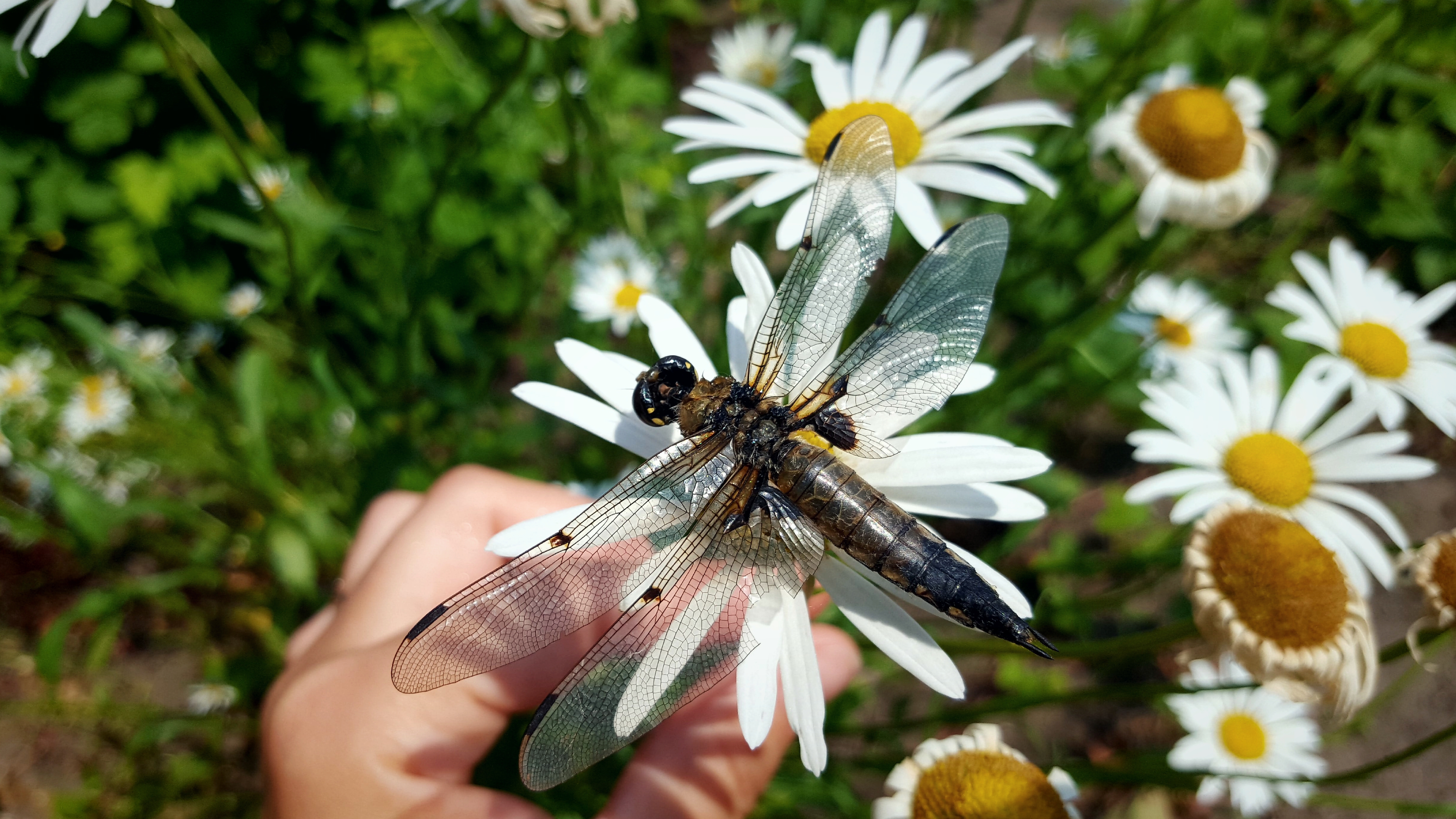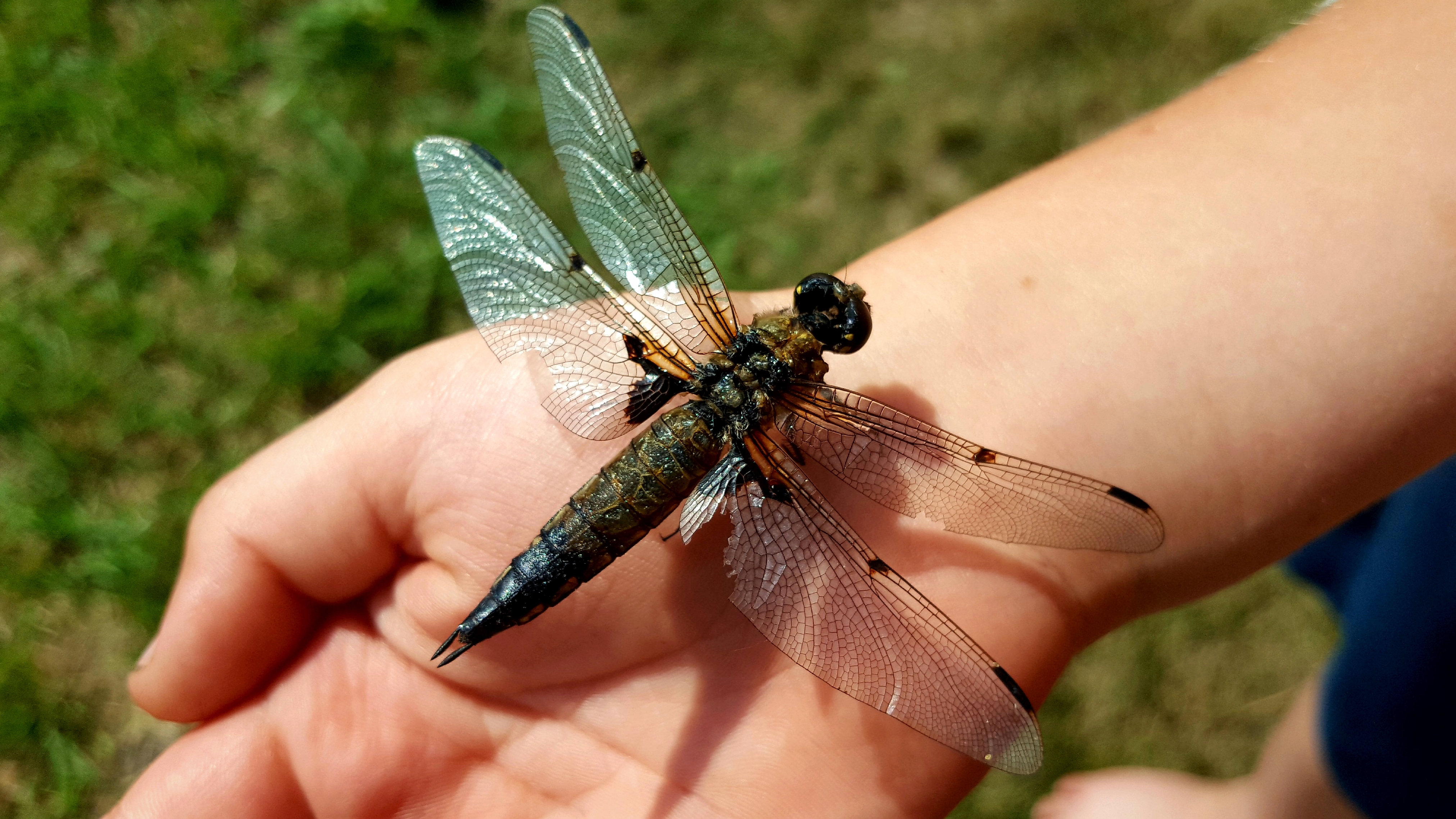My son saved this dragonfly. She fell into the water in the pool and could not get out herself.