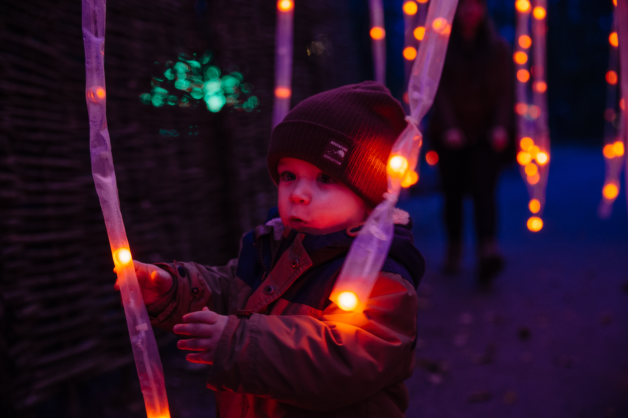 How are you all? Hope you are all having a great start to the new year !! The good thing about winter and maybe the bad thing depending on how you look at it ! Is that it gets dark earlier which means we can explore places when it’s dark with our son before his bedtime! We wanted to create some lovely memories and a place near us did a night of illuminations like a walk through a forest so we went to that before Xmas. It was so nice seeing him so excited about all the lights and displays! By the end of it he was so tired we had to put him back in the pram to walk around the end. It’s something we are going to try and make a tradition to go to each year and it’s so nice that we can now start to have more adventures with him now he’s getting older! Although I don’t want to wish him getting older at all, he’s slowly becoming more and more independent which obviously is a good thing but it makes me also sad that he doesn’t need my confit quite as much!! Anyway I hope you all enjoy the photos !