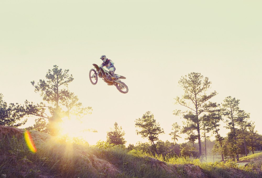 A dirt bike caught mid-air. Photo by King Lawrence / Tetra Images