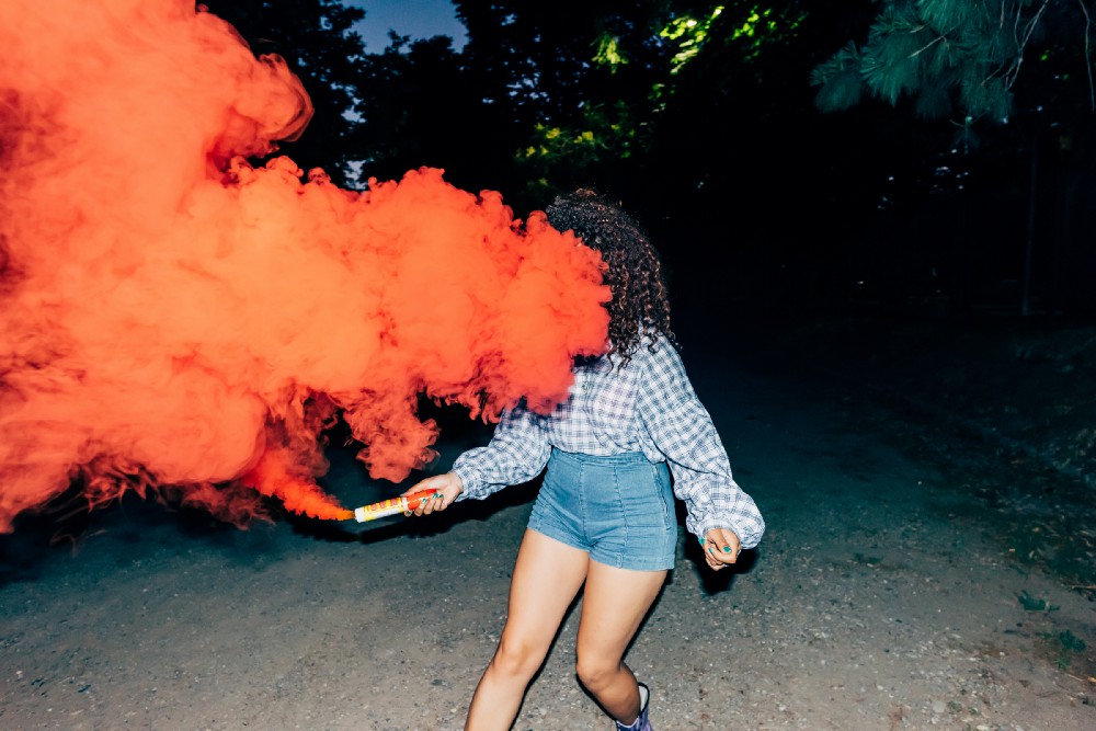 A woman holding a flare in a park at night. Photo by Eugenio Marongiu/ Image Source