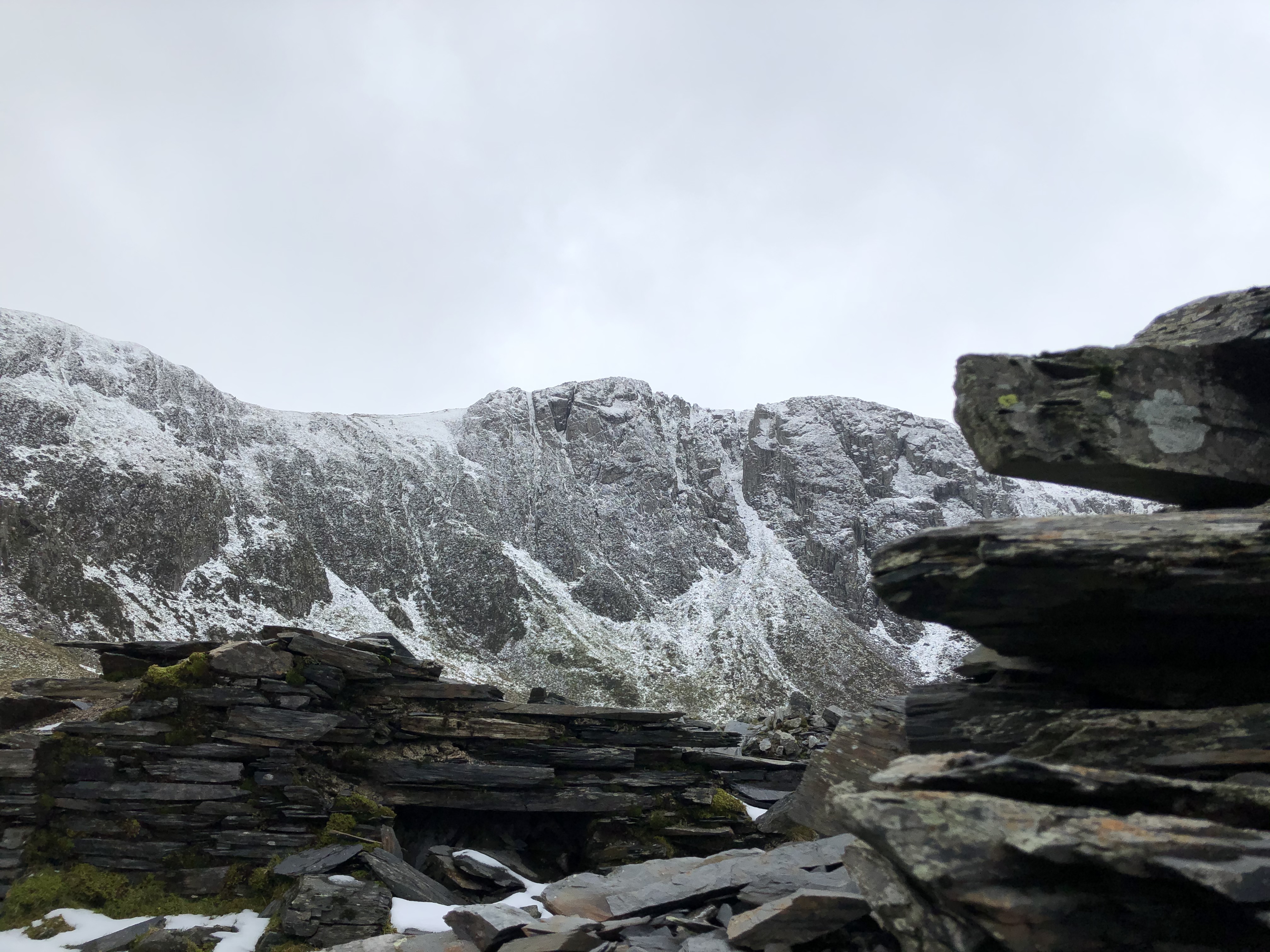 As I waited for the stove to cool enough for it to be safely stowed back in my rucksack, I peered over the walls of my improvised dwelling and savoured the moment, marvelling at the white and black, rugged and daunting masses of rock that towered around me.
