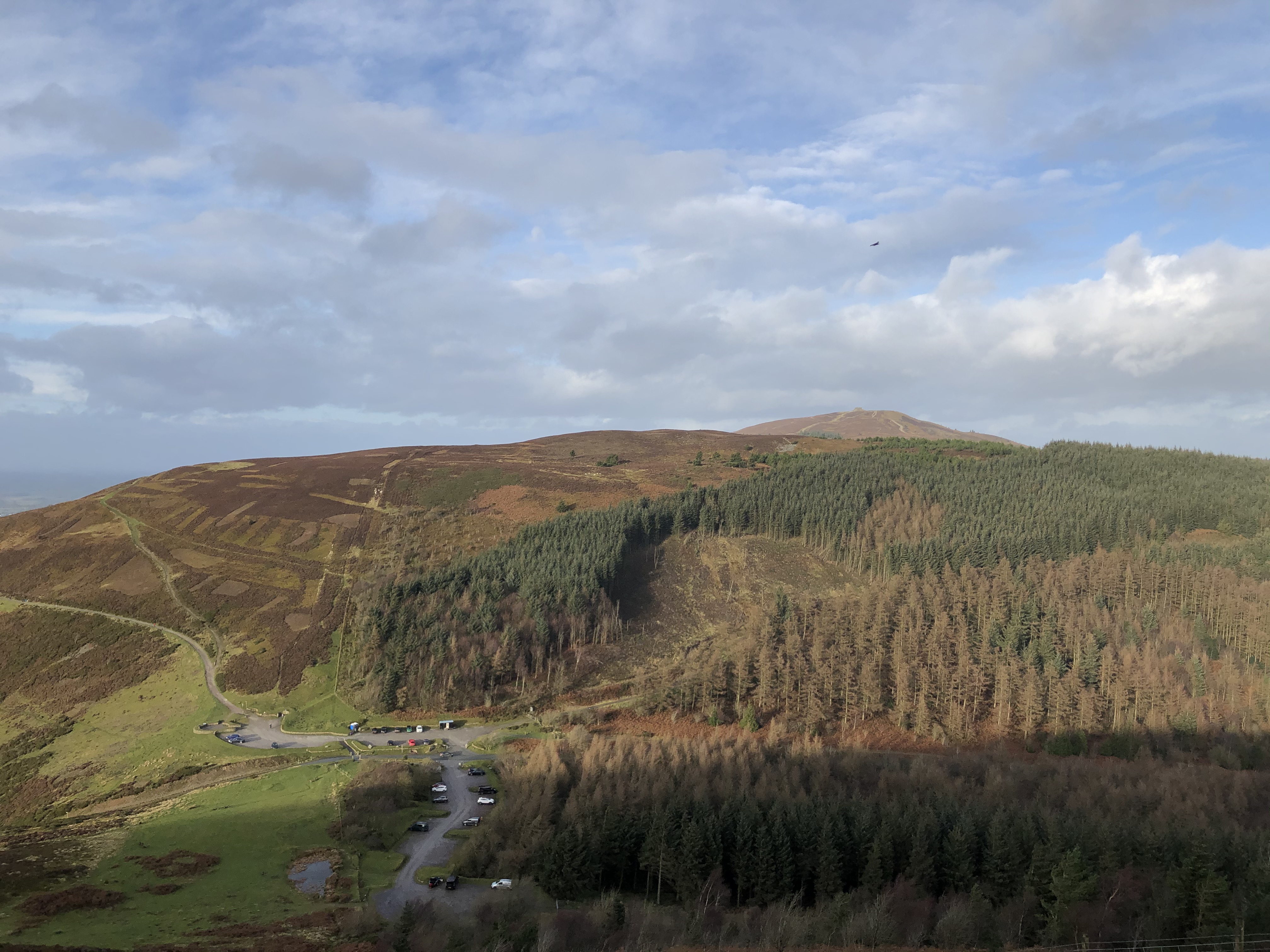 Moel Famau in the distance and my silver van in the bottom right corner of the car park.