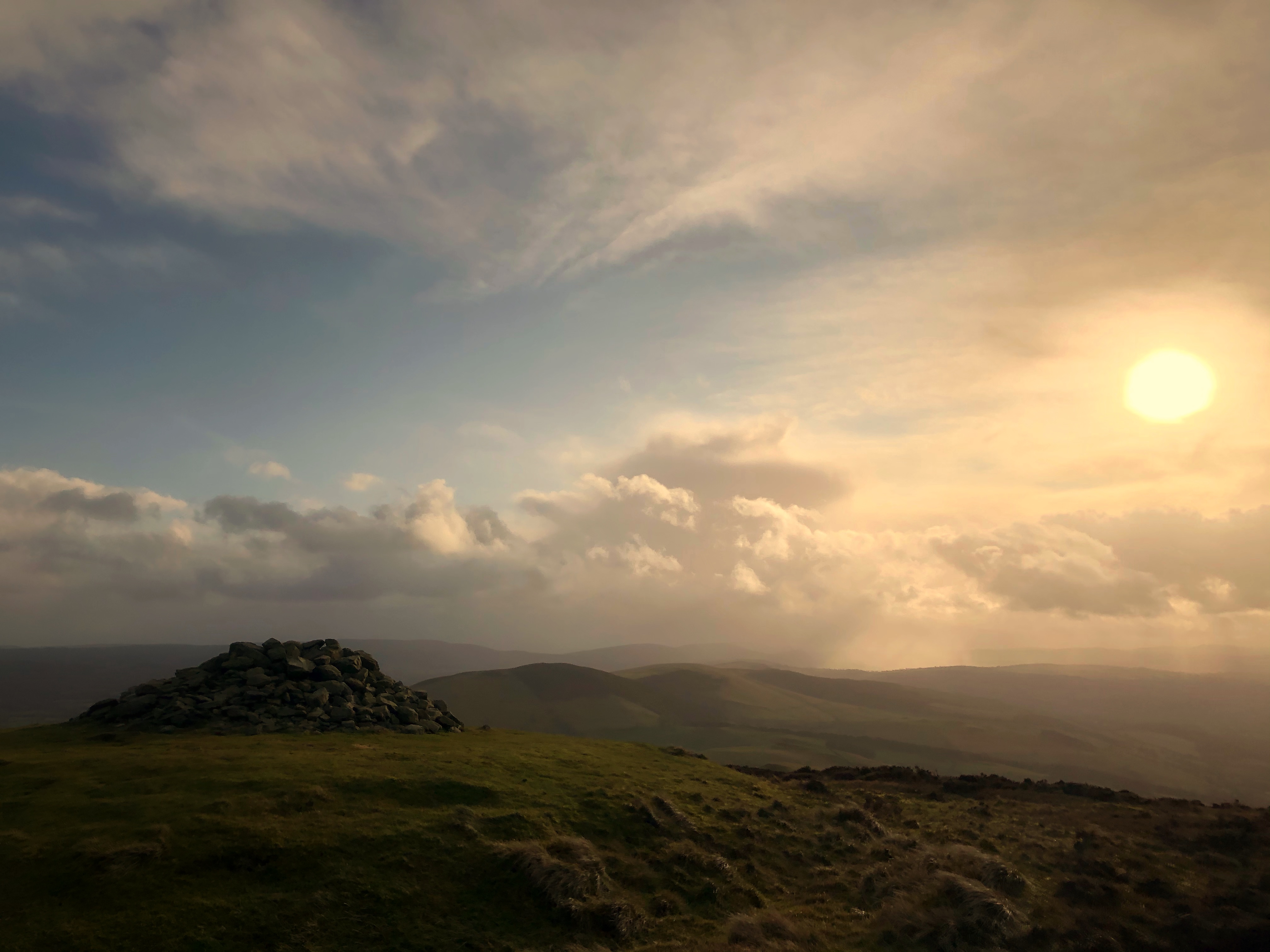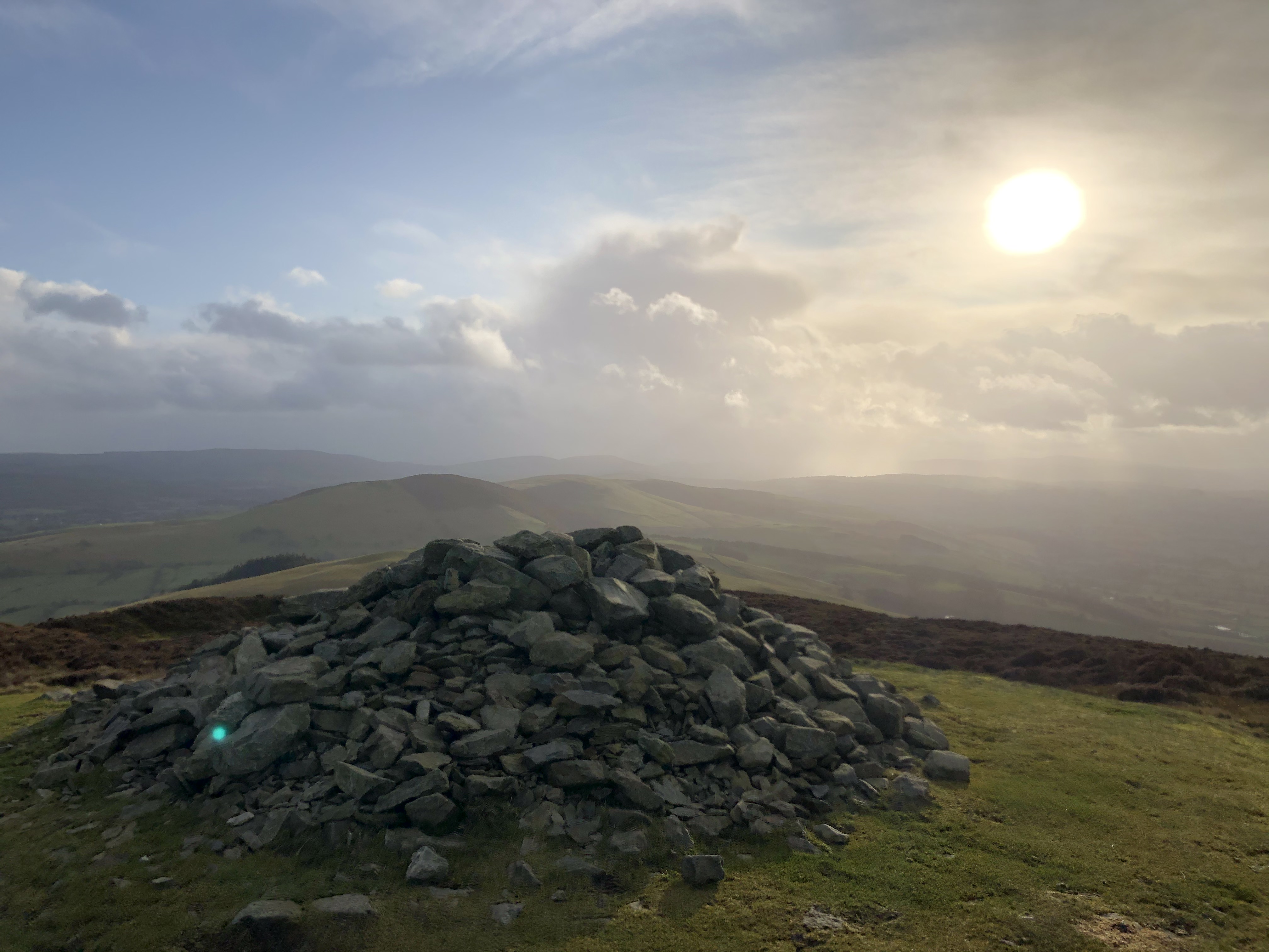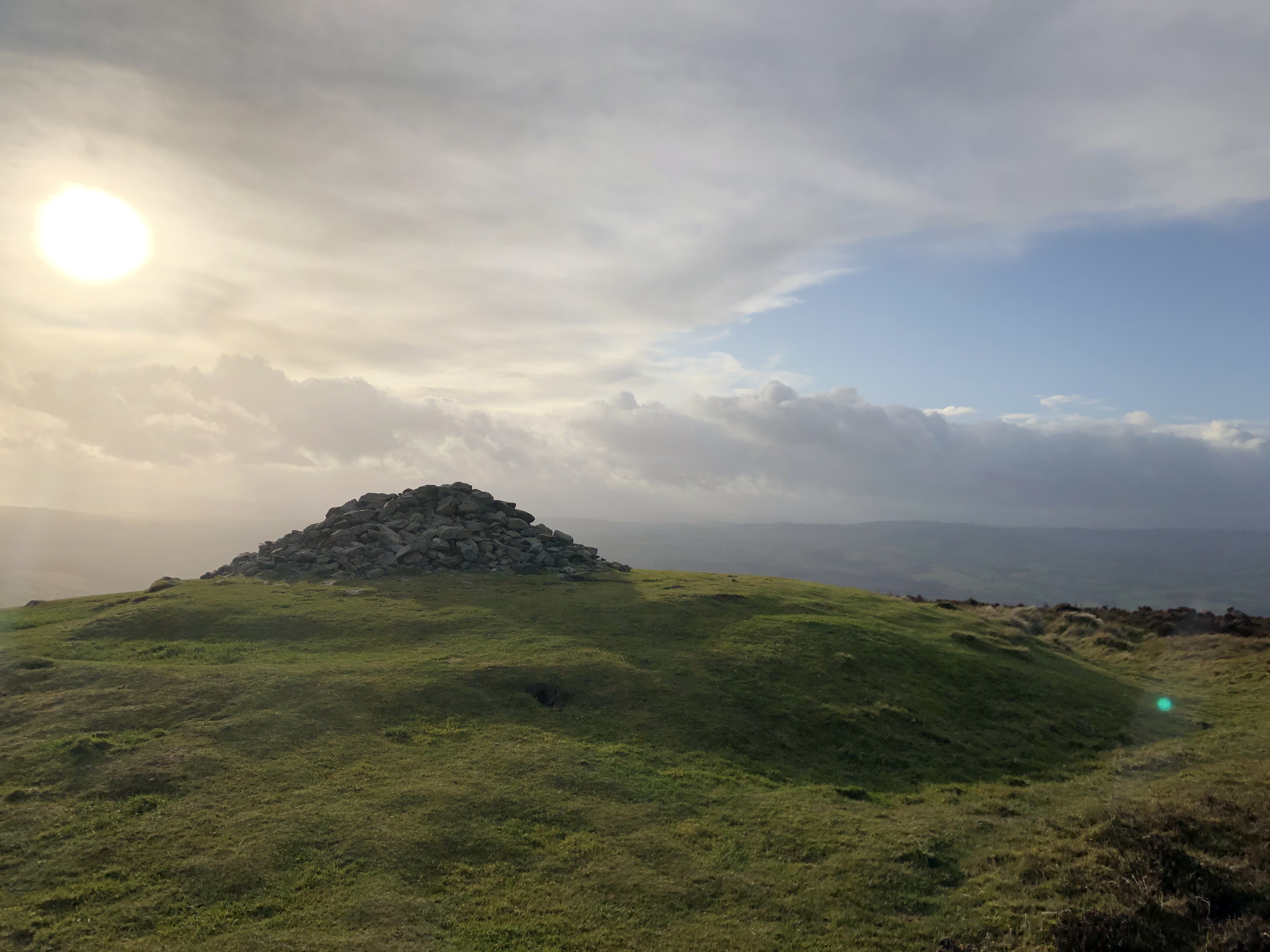 Foel Fenlli as it's also known, is a small hill in Denbighshire, North Wales. The second highest peak on the Clwydian Range, it features one in a series of Iron Age hillforts running along the peaks of the range. There is also a Bronze Age burial mound at the summit, which is marked by a cairn (pile of stones).