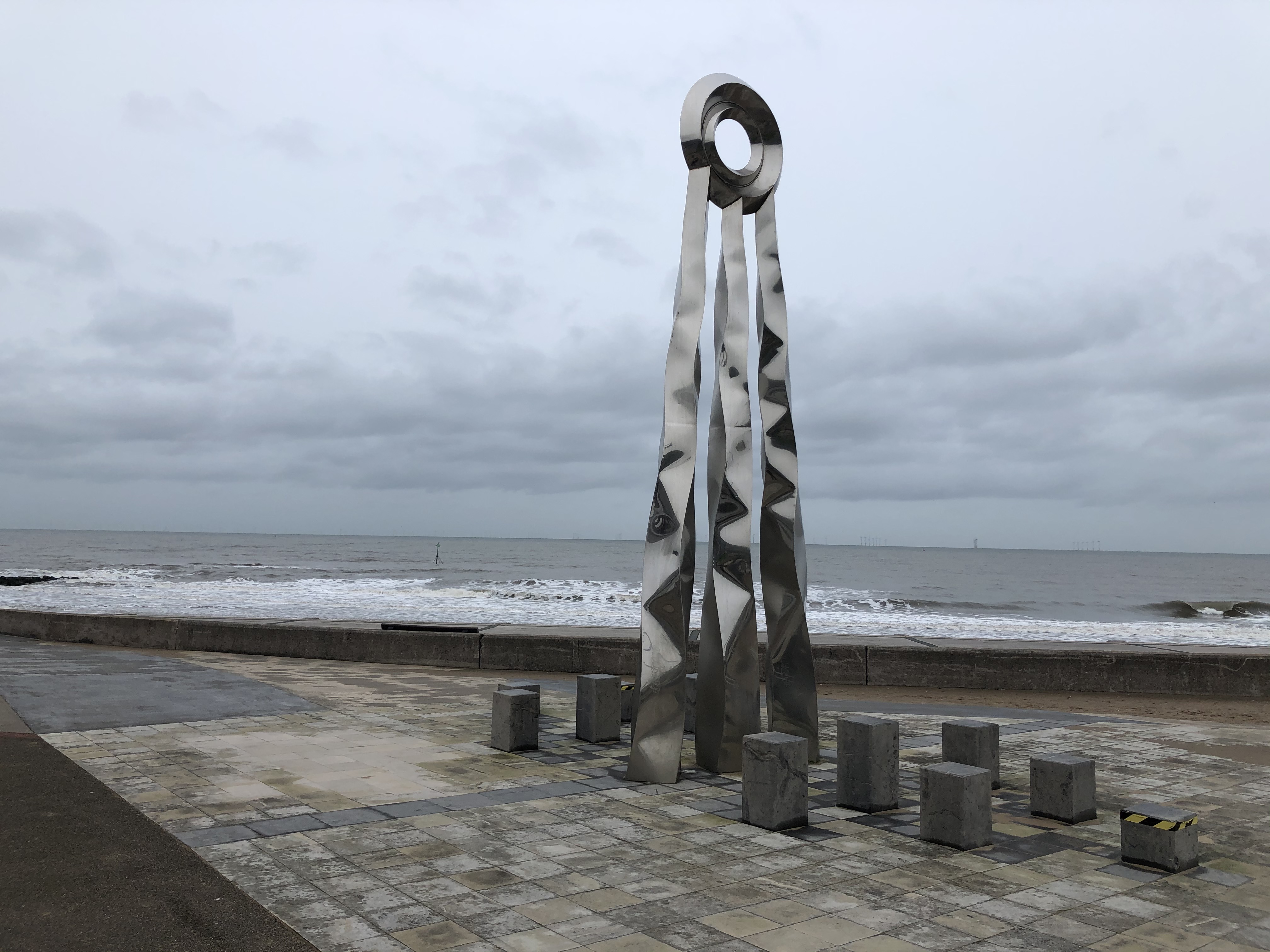 The shiny sculpture resembles the sun and when starting the route from Prestatyn it appears in the eastern sky, symbolising the rising of the sun and the start of a new journey as opposed to the photo above where it appears in the western sky signifying the setting of the sun and the end of the journey for any hikers going the opposite direction and finishing their adventure in Prestatyn.