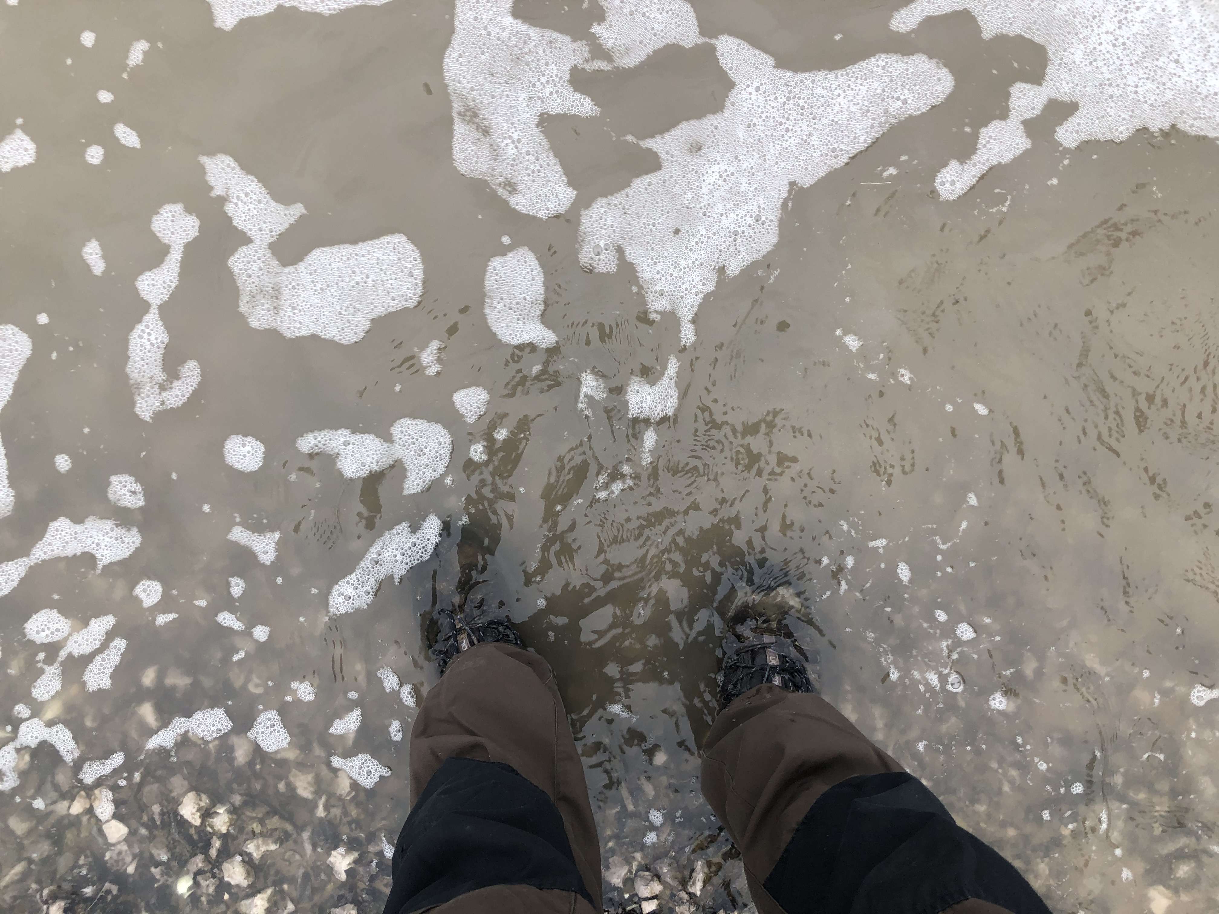 The weather was overcast as we made our way onto the beach at Prestatyn but with the rain holding off, we took the short walk into the surf at high tide for a Kodak moment and a Gore-Tex test run in my boots!