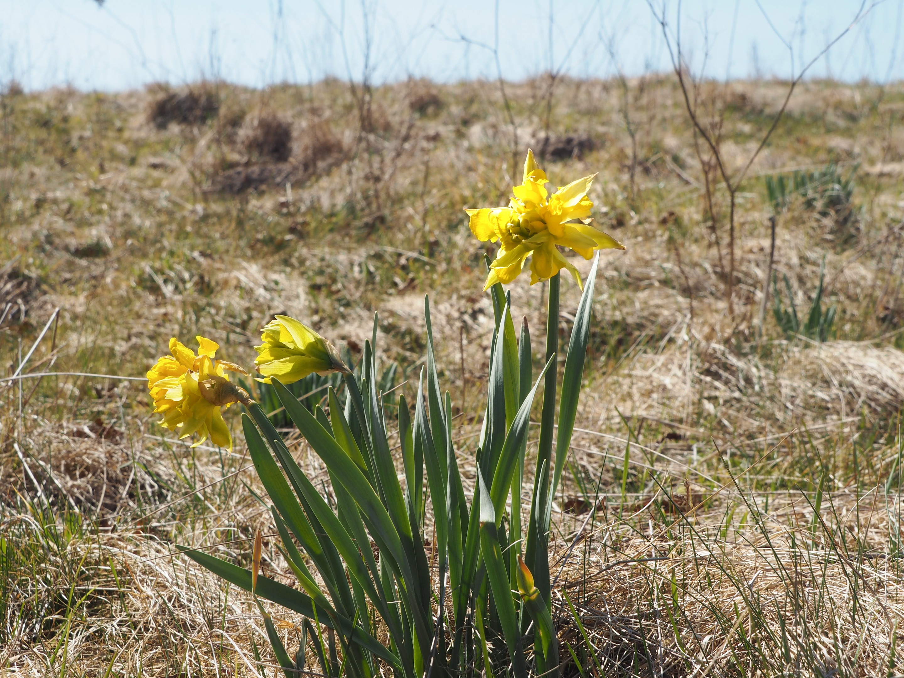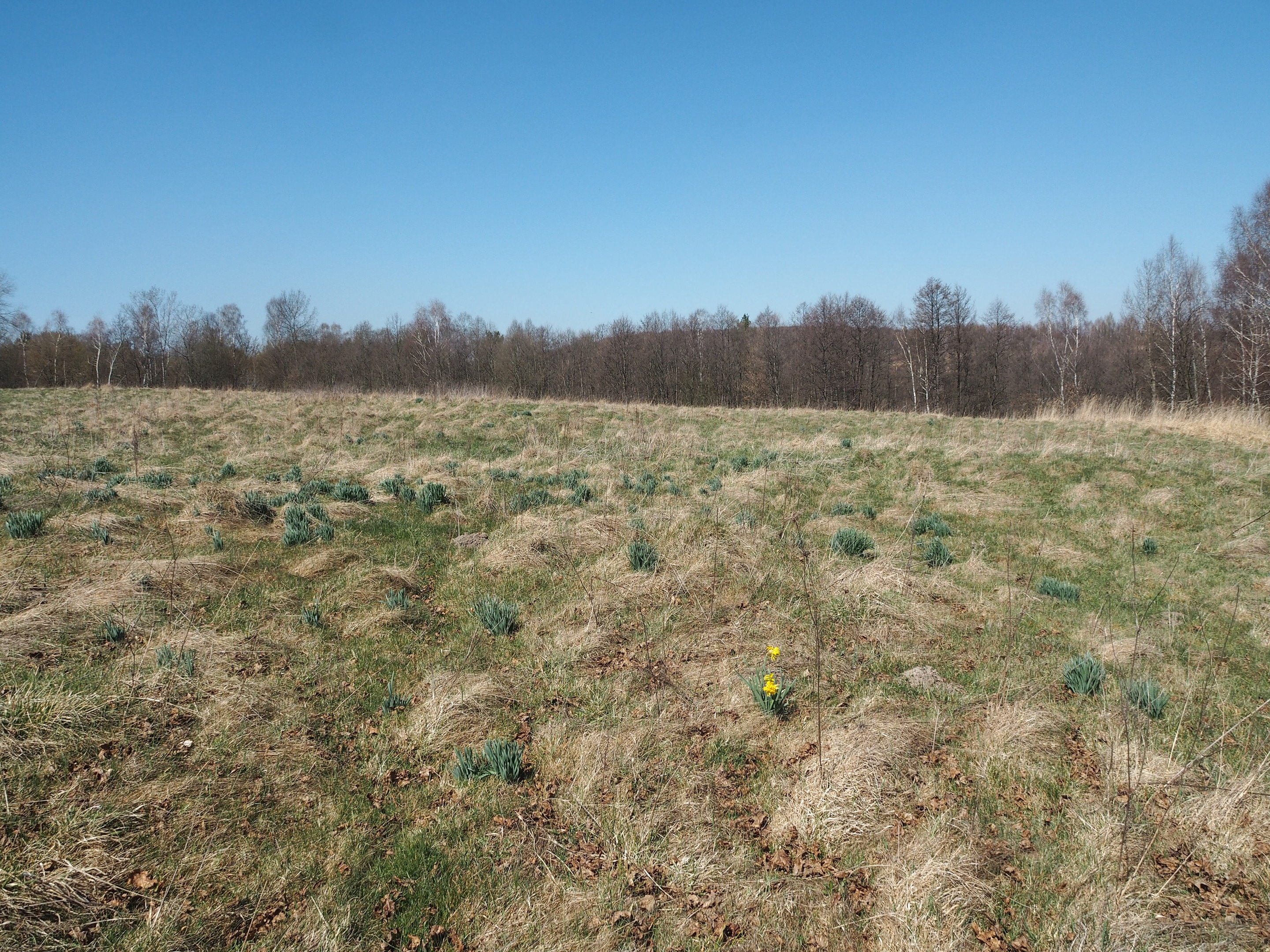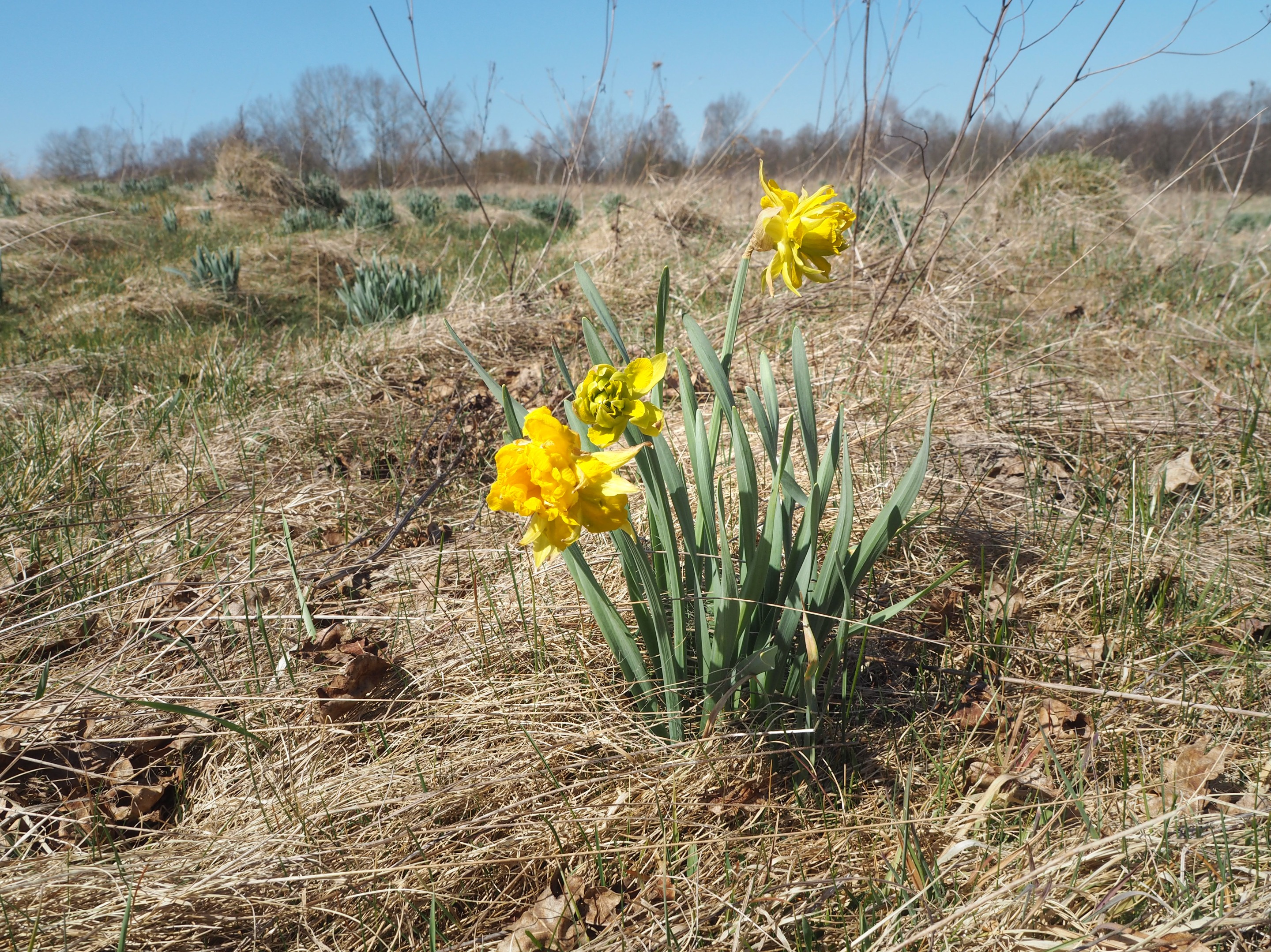 Daffodils in our region do not grow wild, they are planted by people. In early April, my friends and I went on a picnic in the woods. We chose the same area where we usually go for mushrooms in the fall. We stopped at the edge of the forest, where there was no hint of human habitation. And yet, when I got out of the car, I saw a whole meadow of daffodil bushes. Most of them were without flowers, only one of them bloomed yellow. Probably once upon a time there was a manor house here, which was destroyed. It may have burned to the ground. But the daffodils survived and survived, although apparently they have gone so wild that most of them have lost the ability to bloom.