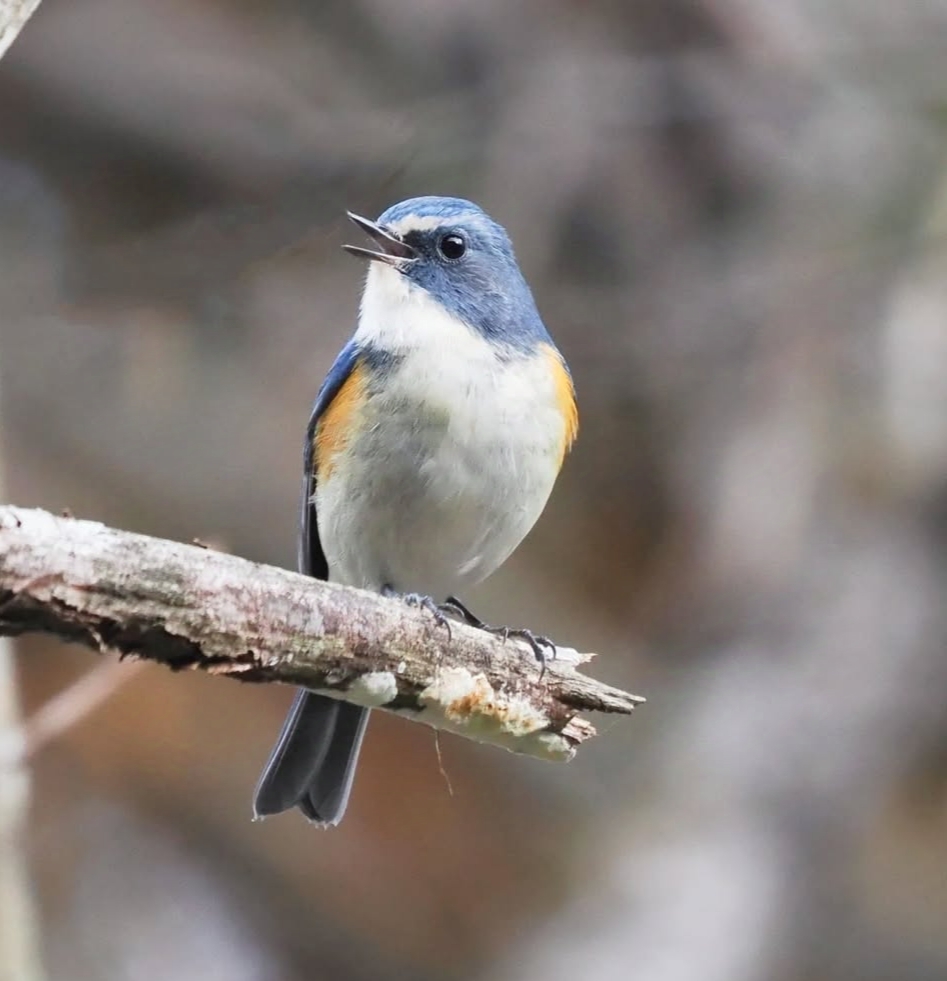 Females and juveniles, while less conspicuous, are equally charming with their olive-brown upper parts and hints of blue on their tail and wings. They also have the characteristic orange flanks, though these are often less pronounced.