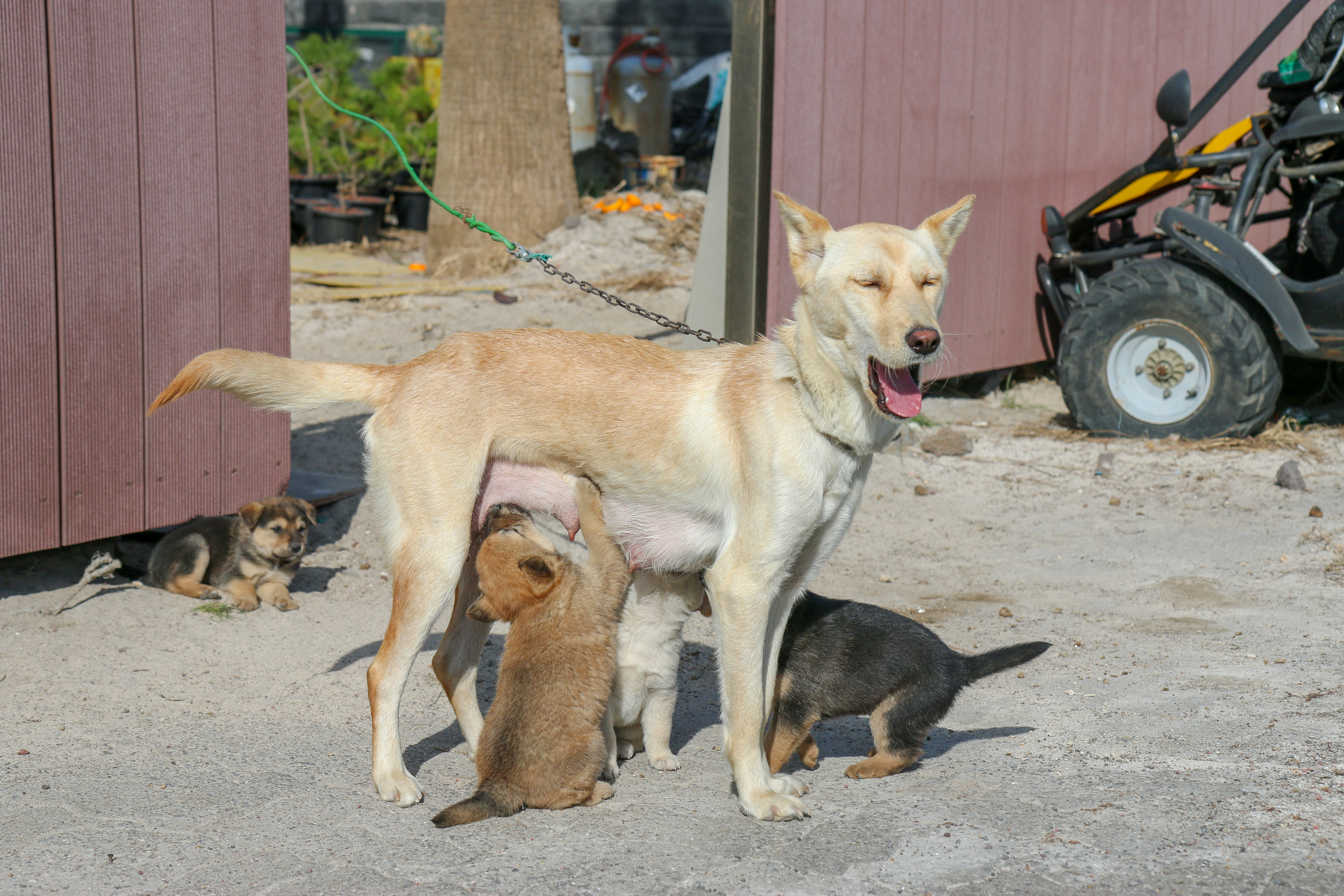 이가 나기 시작한 새끼들이 젖을 깨물자 이리저리 도망가던…