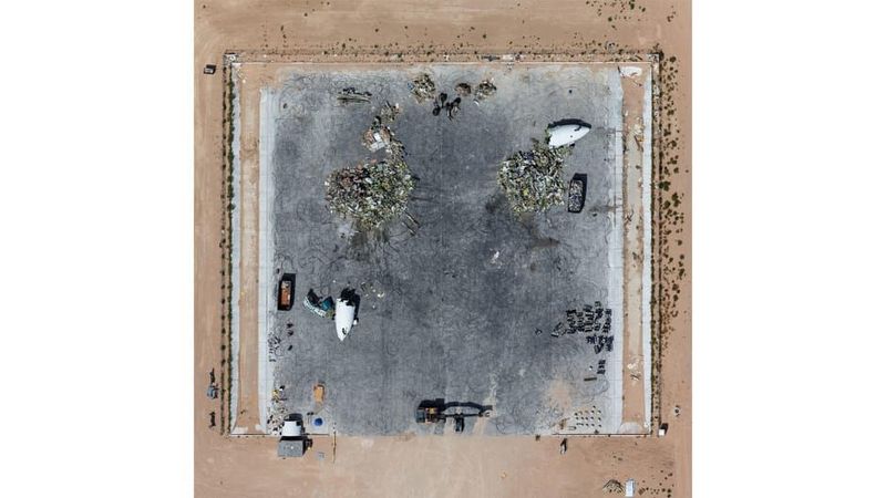 The photographs in the desert showed the planes lined up and ready to be dragged. In the other photo shows the remains of the planes are dismembered