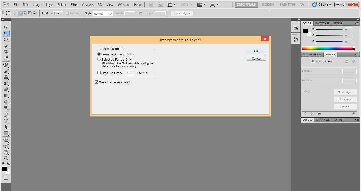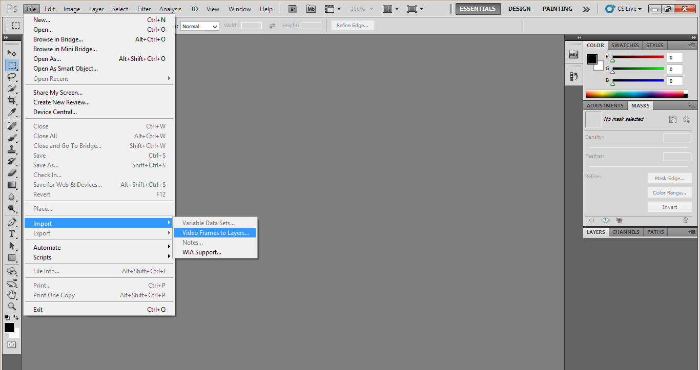 First Open the menu bar then click File > Import > Video Frames to Layer.