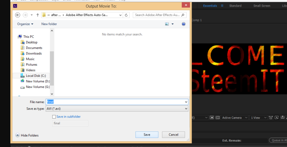 - Name your composition with any name you want.