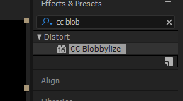 - After than go to effects and presets and search for cc blobbylize. Drag the the blobbylize effect:
