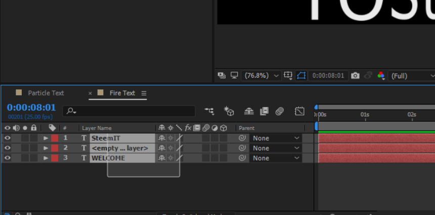 - Select all 3 texts then Right click > Pre-composed.