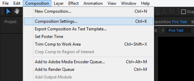 - Then go to the menu bar across the top click the composition tab.