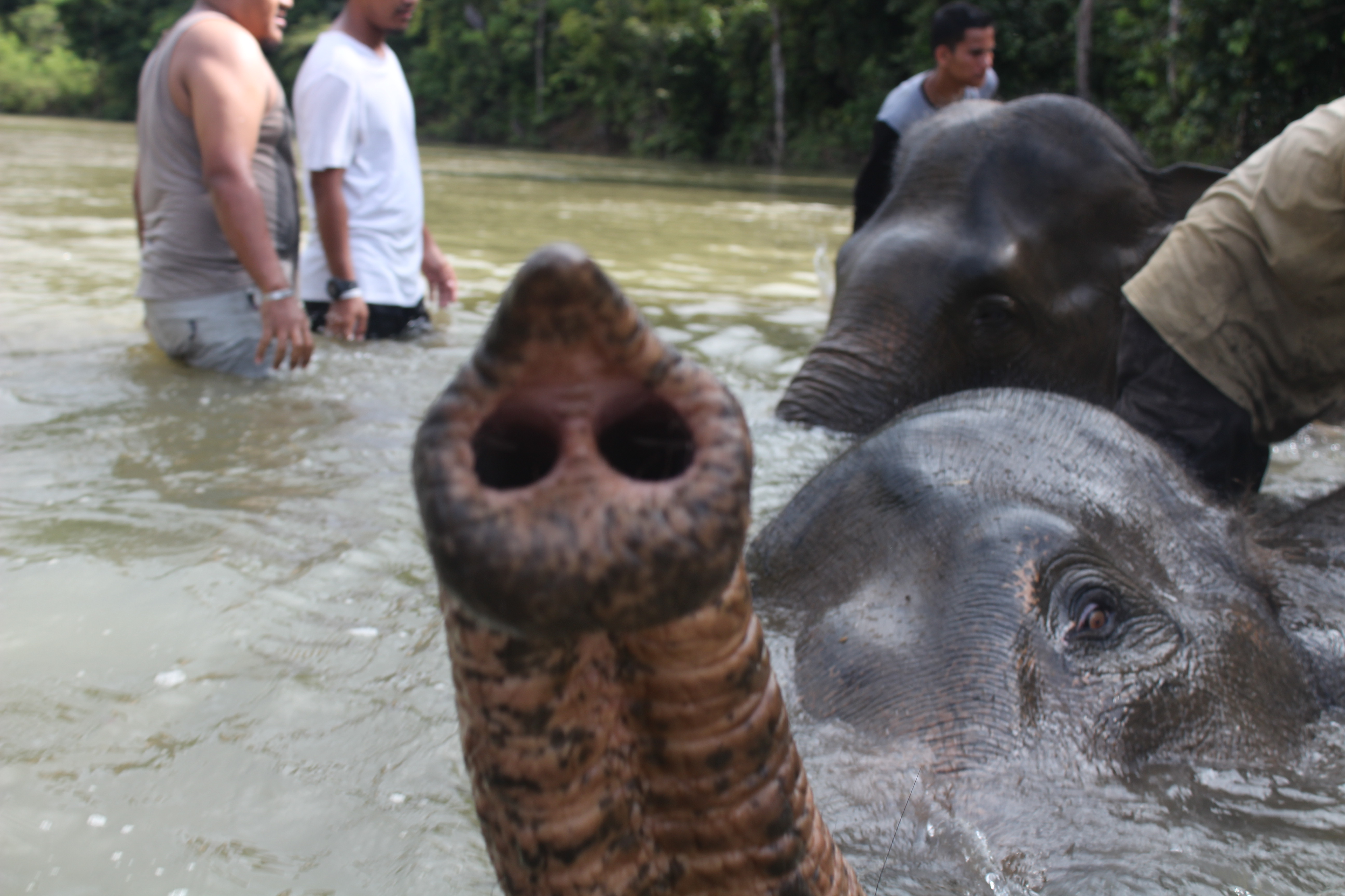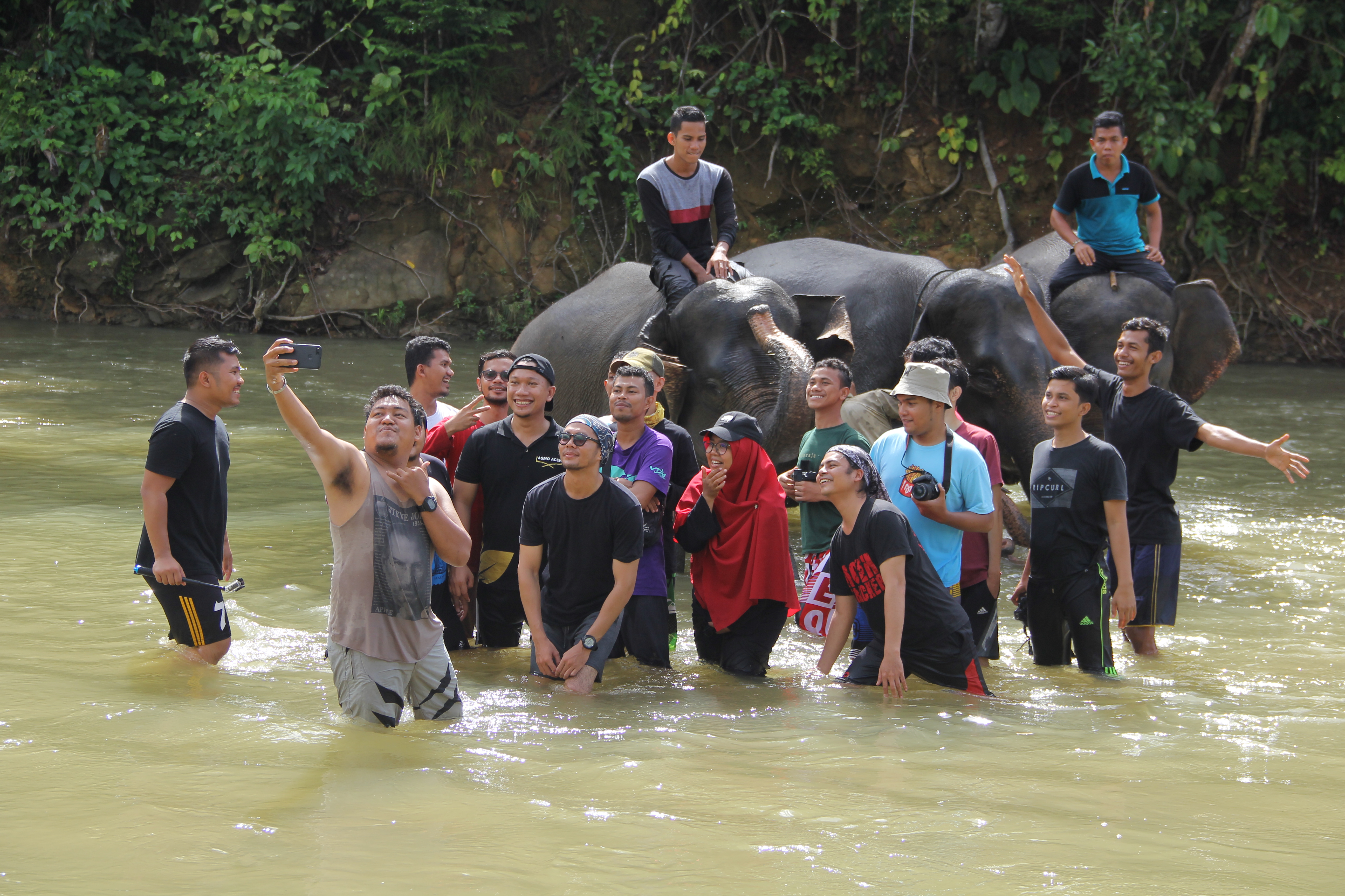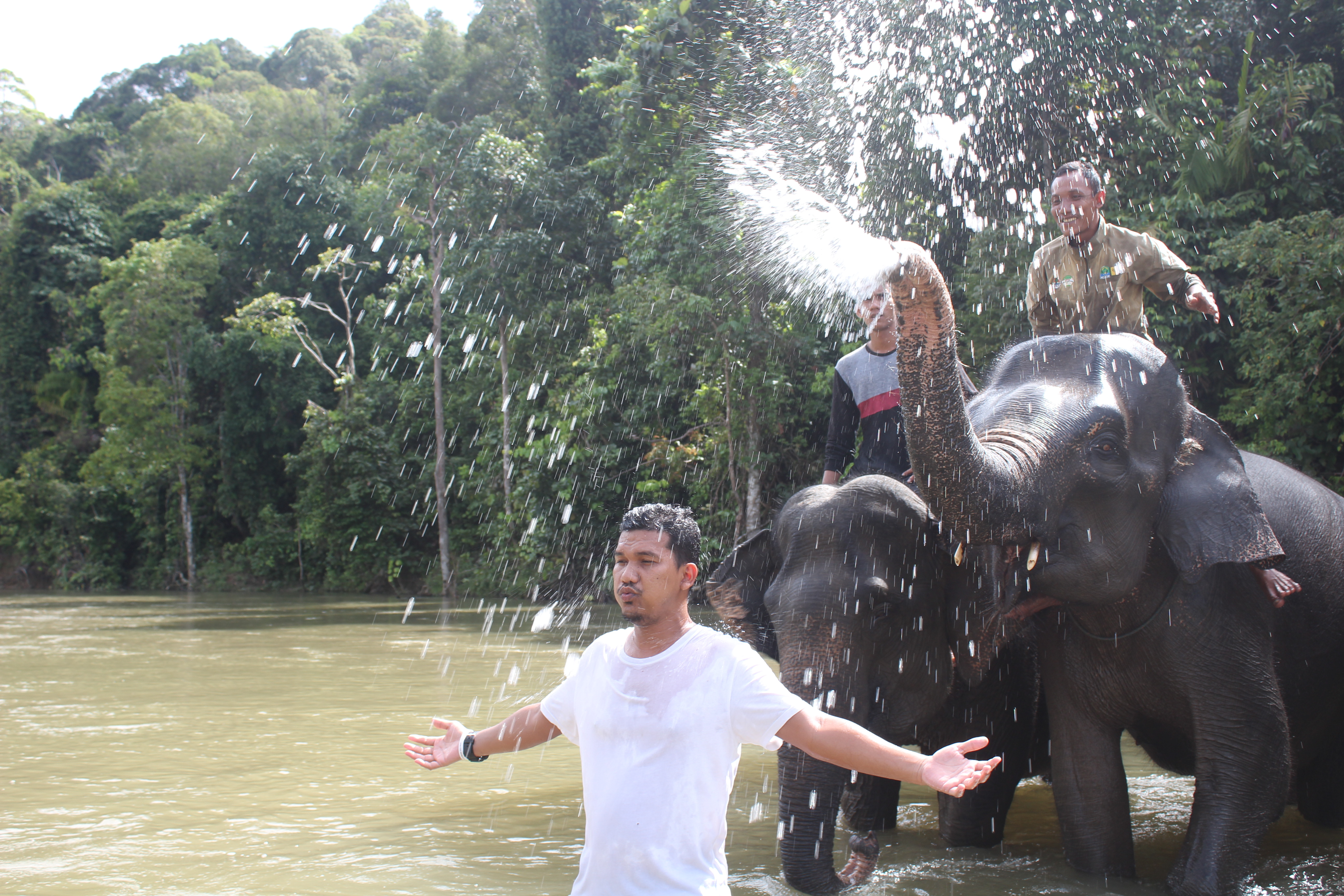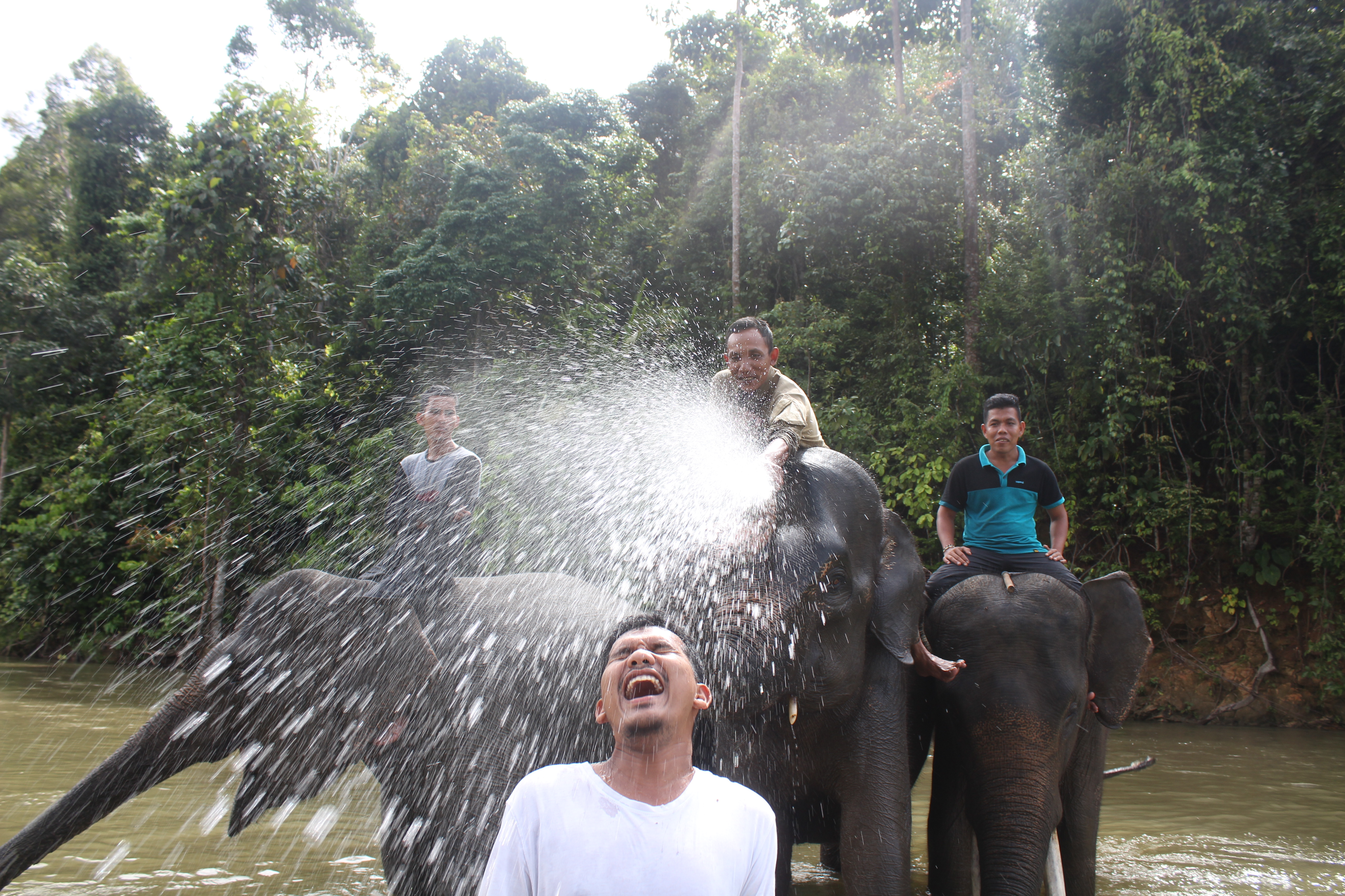 KEHARMONISAN| Sampoinet, Aceh Jaya. Selalu menyuarakan keharmonisan. Alam yang terbentang luas nan indah membuat pengunjung selalu memadati tempat ini. Mereka tidak hanya melihat gajah-gajah, namun juga ikut bercengkrama denga gajah-gajah.