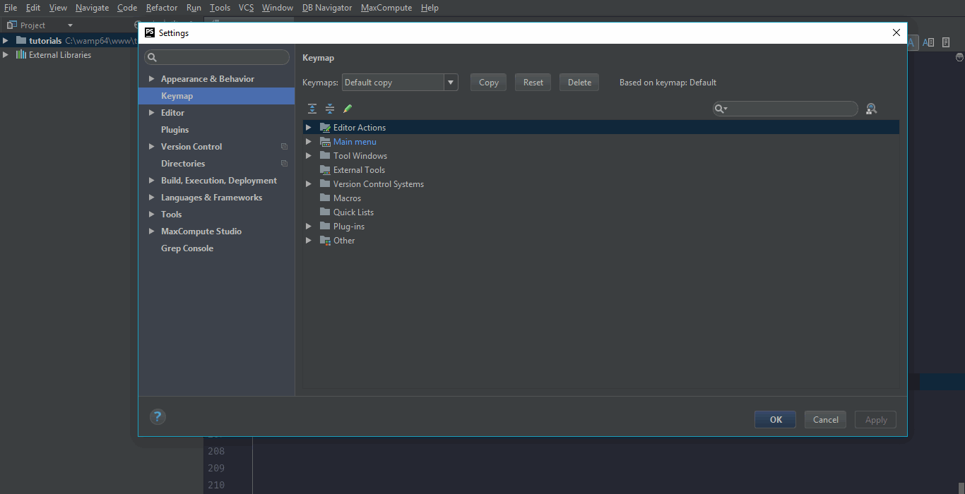 You could change key bindings in PhpStorm by going to settings/preferences and then select Keymap. First Copy your default keymap and save it with any name you want and apply it. Let's say you want to change the key binding for Navigate > Line/Column. You could either enter line/column in the search box or you could also use the search button on the right of your search box and press the present key binding for that option. In case of Line/Column, default key binding on windows is Ctrl + G or ⌘ + G on mac. Double click on Line/Column and select Add keyboard shortcut. Press any key binding you want and if there are any existing key bindings, simply change it to any other keybinding or press ok to remove that binding from the conflict and apply that binding to the selected option. Click Apply to apply those changes.