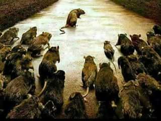When the hunter reaches the rats to kill rats, hundreds of rats are clinging to each other, and a mouse is lying on top of a brick with a colorful cloth bed and chitpotanga.
