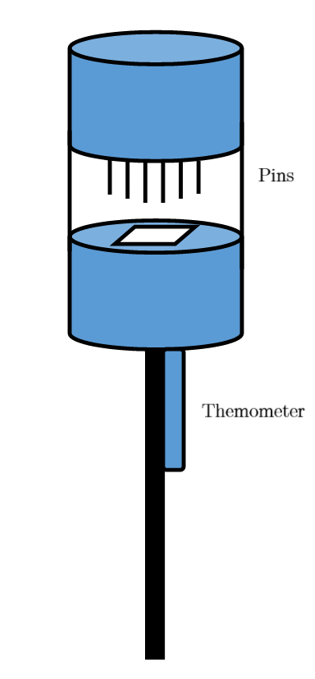 - Probe-stick (themometer attached on rod below sample holder)
