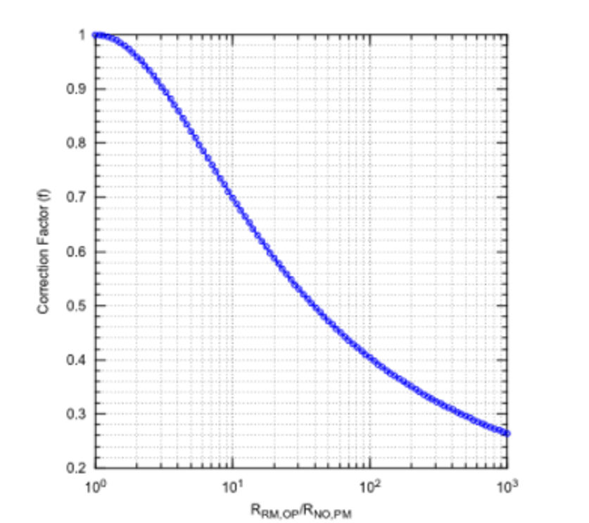 The correction factor, f, is a universal value that is obtained from a graph, shown in figure 9. It depends on the ratio of the two resistances, where the smaller resistance is always divided by the larger one.