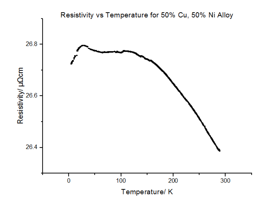 The Resistivity vs Temperature graph for 50% Copper 50% Nickel, is shown below, in figure 26.
