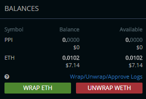 Afterwards you just open the PPI-ETH site and place a sell order of your PPI depending on the order book on the right side. Once they are sold you can just unweth them back into eth and the eth will be back in your balance and transferable.