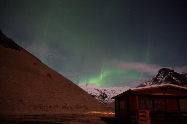 We run outside and it was she, the queen of the night, the northern lights.