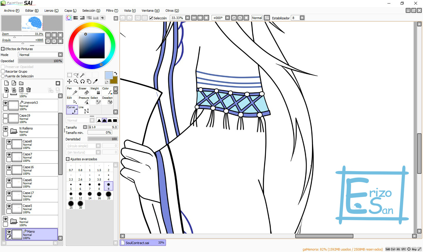 Para mis dibujos utilizo este programa Paint Tool Sai, que es un programa de dibujo digital, mayormente implementado con tabletas digitales, pero en mi caso, yo no poseo una, utilizo directamente el mouse.