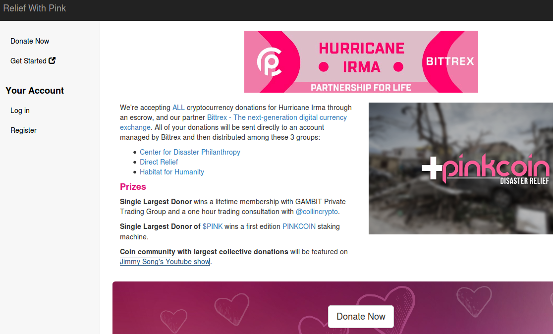 Relief With Pink + Hurricane Irma: accepting ALL cryptocurrency donations for relief -> currently >$14k