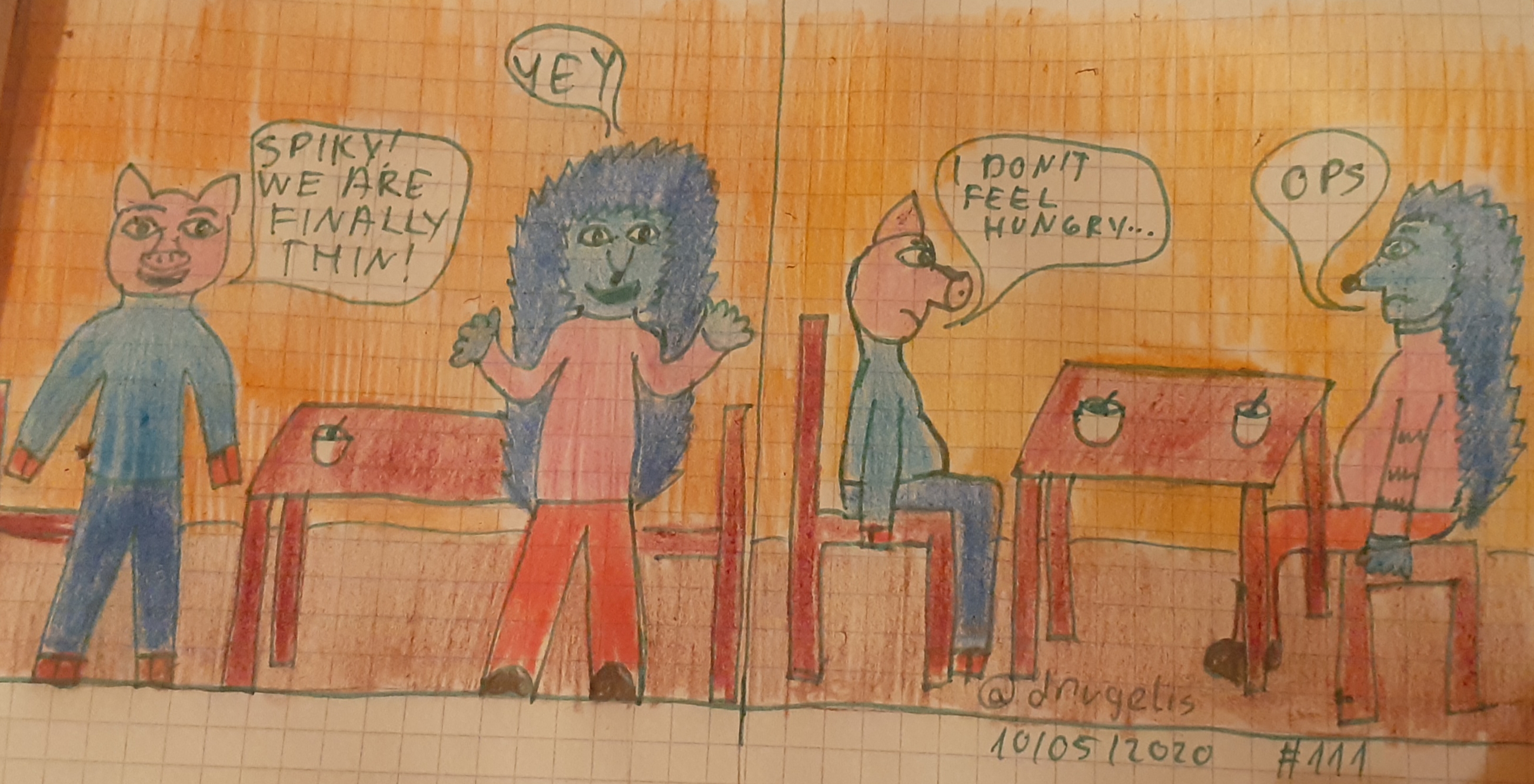 Pinky and Spiky Drawing Contest Week 111steemCreated with Sketch.drugelis (63)in #pinkyandspiky • 6 years ago Pinky and Spiky try to lose some weight before summer. They thought that finally they did it. But when they sat down... #creativecoin #palnet #neoxian #marlians #upfundme