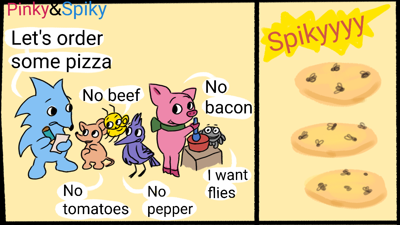Here is a comics I made as my entry to the Pinky and Spiky Drawing Contest. The theme this week is about pizza night. My comics tells about saying what you want and not what you don't want because most likely the results you will not like.