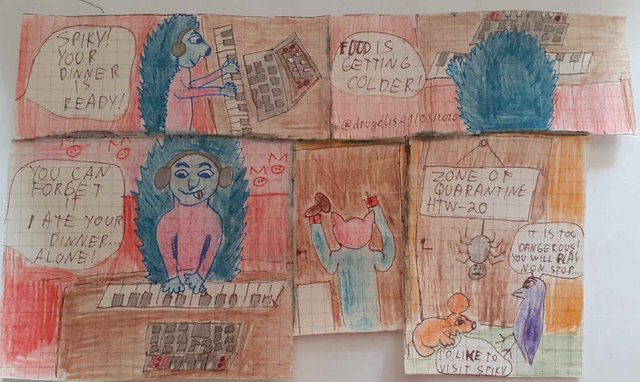 Do you like the quirky humor of our piglet Pinky and hedgehog Spiky? Can you relate with the screw-ups of Spiky? Or perhaps you have something in common with the order-loving Pinky? Or maybe you like their pets - Cornelius the purple cardinal, Dietrich the mouse, Victor the spider and Betsy the butterfly? They sure add lots of fun to the situations. Here's the thing: my wife Ausra - @laputis and I invite you to join in a contest to draw our beloved imaginary friends and win some STEEM.