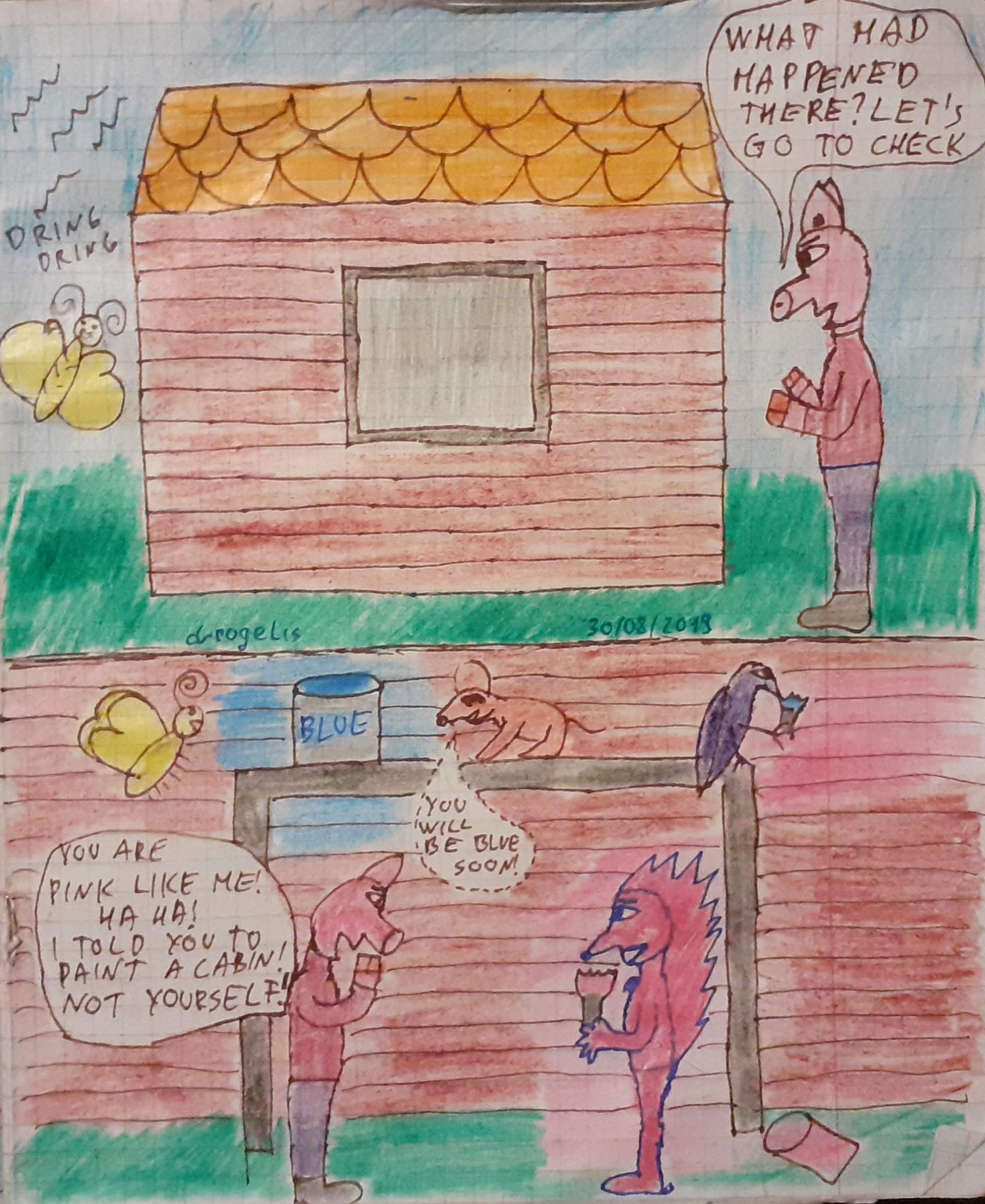 Do you like the quirky humor of our piglet Pinky and hedgehog Spiky? Can you relate with the screw-ups of Spiky? Or perhaps you have something in common with the order-loving Pinky? Or maybe you like their pets - Cornelius the purple cardinal, Dietrich the mouse, Victor the spider and Betsy the butterfly? They sure add lots of fun to the situations. Here's the thing: my wife Ausra - @laputis and I invite you to join in a contest to draw our beloved imaginary friends and win some STEEM.