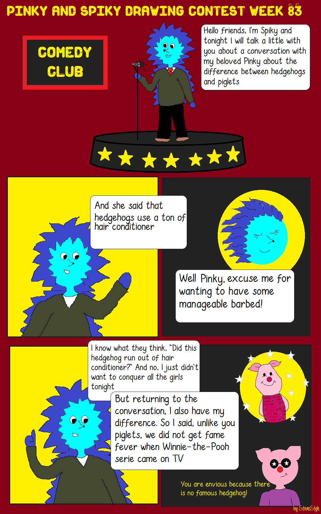 Here's my entry! https://steempeak.com/@leysa/the-greatest-difference-between-piglets-and-hedgehogs-or-pinky-and-spiky-drawing-contest-week-83