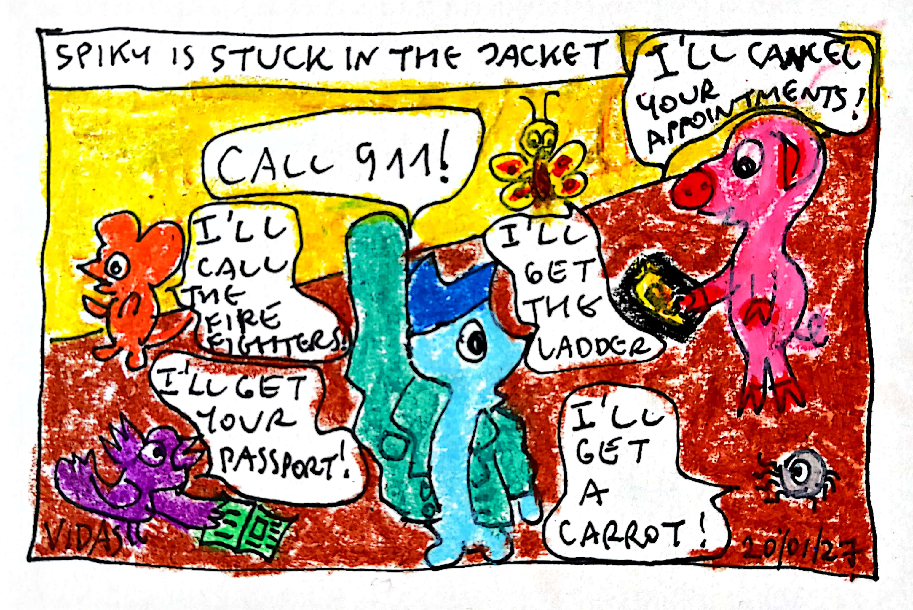 Do you like the quirky humor of our piglet Pinky and hedgehog Spiky? Can you relate with the screw-ups of Spiky? Or perhaps you have something in common with the order-loving Pinky? Or maybe you like their pets - Cornelius the purple cardinal, Dietrich the mouse, Victor the spider and Betsy the butterfly? They sure add lots of fun to the situations. Here's the thing: my wife Ausra - @laputis and I invite you to join in a contest to draw our beloved imaginary friends and win some STEEM.