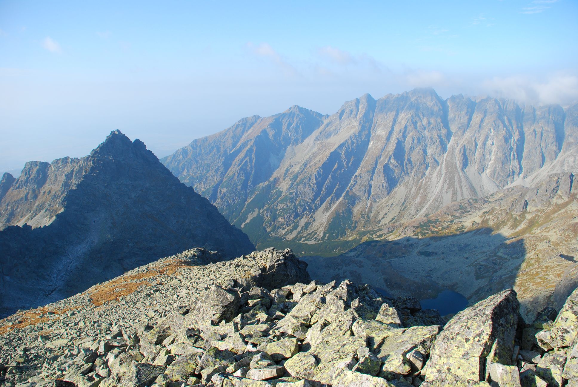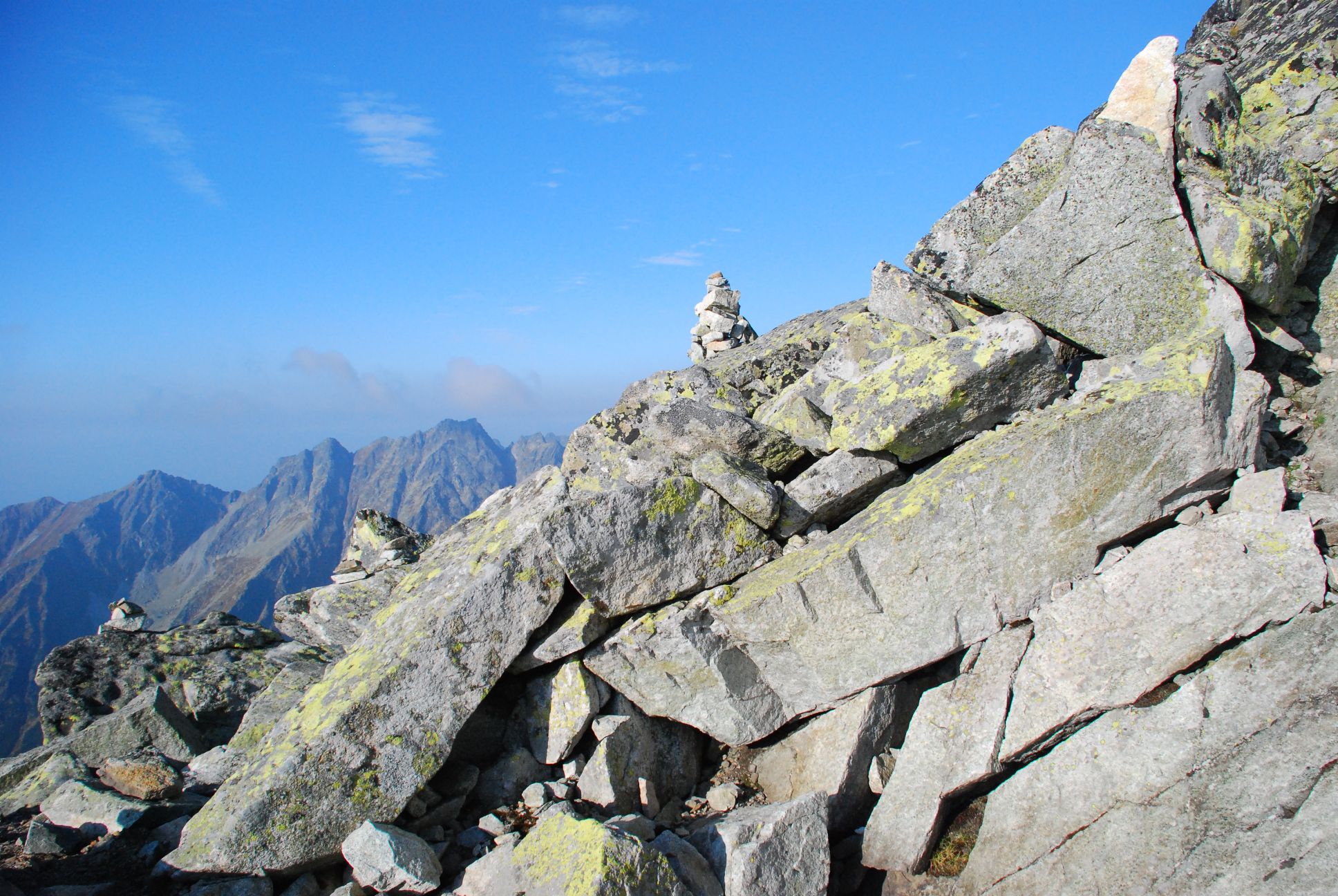 Wspinając się na szczyt Rysy, napotkałem trudne warunki atmosferyczne - otaczała nas gęsta mgła, a wiatr był nieustający. Mimo tych wyzwań, dążenie do osiągnięcia szczytu napawało mnie duchem determinacji i ekscytacją. Po całodniowej wędrówce, noc spędziłem pod Rysami w kamiennej niecce po słowackiej stronie, otoczony przez tatrzańską ciszę i niesamowitą atmosferę tego wyjątkowego miejsca. Poranek okazał się słoneczny i ciepły a widoki zapierały dech w piersiach.